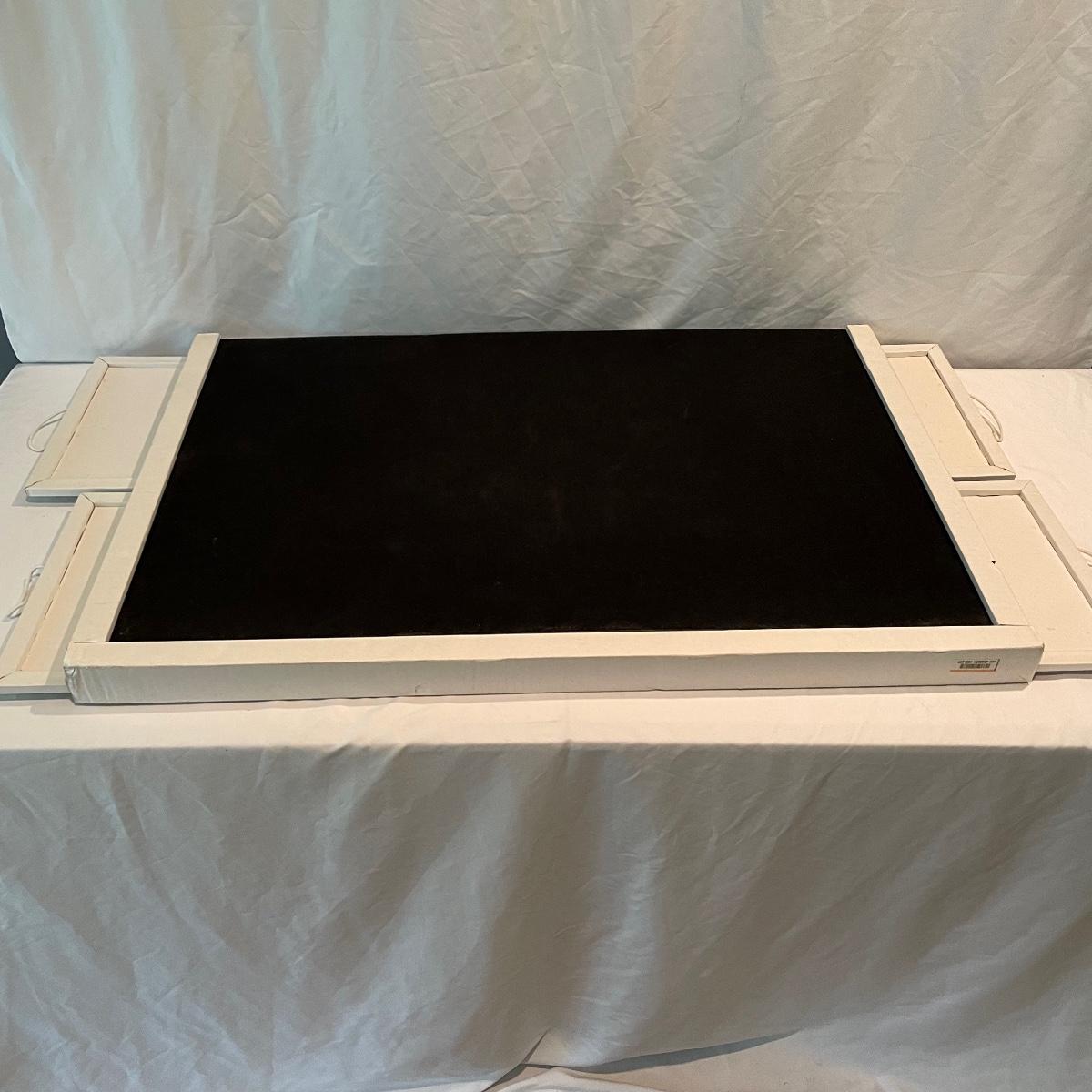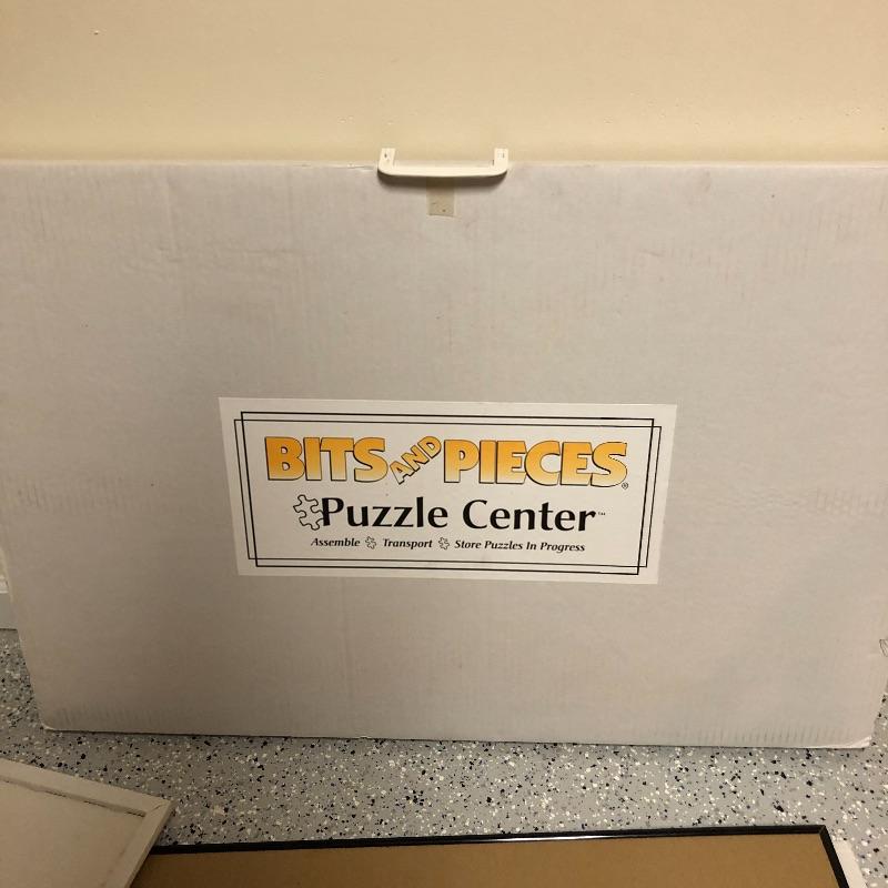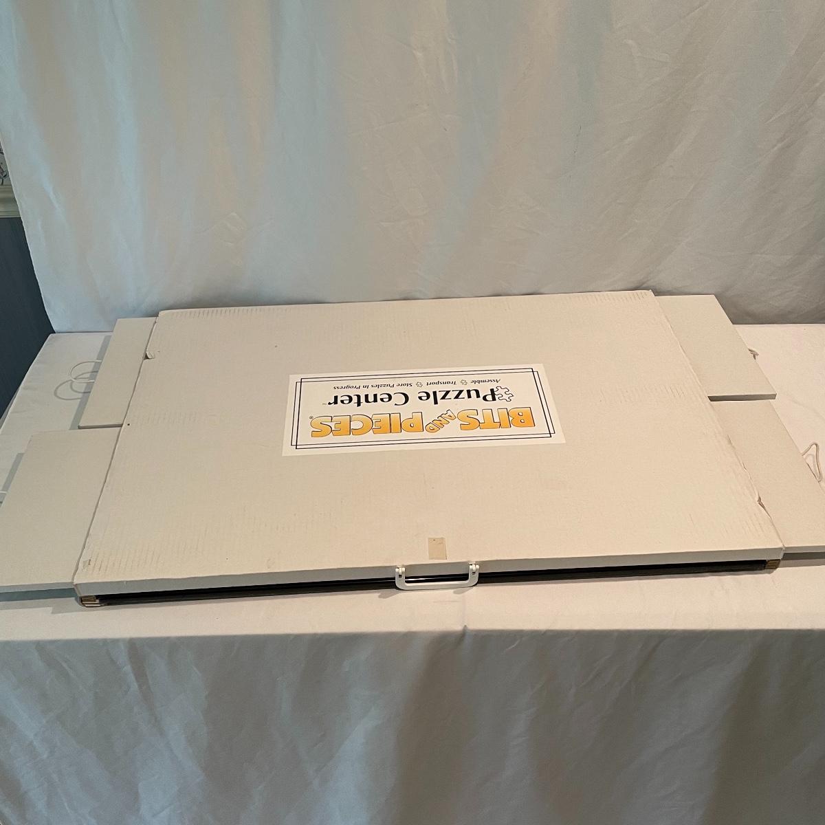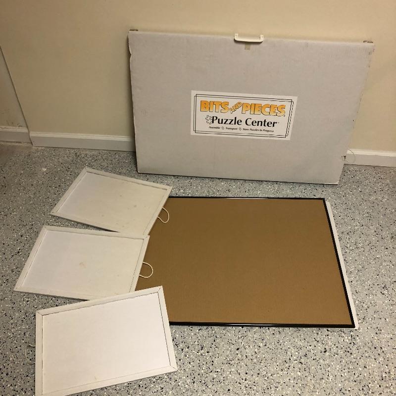 Store your next jigsaw puzzle safely with this Bits and Pieces Puzzle Center that has 4 removable trays to store your sorted pieces and keep them organized and then when you are done you can keep your puzzle in the black poster frame which measures 24” x 35”.