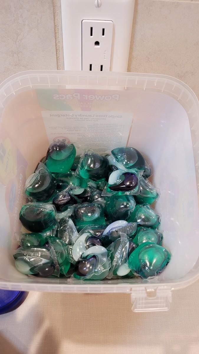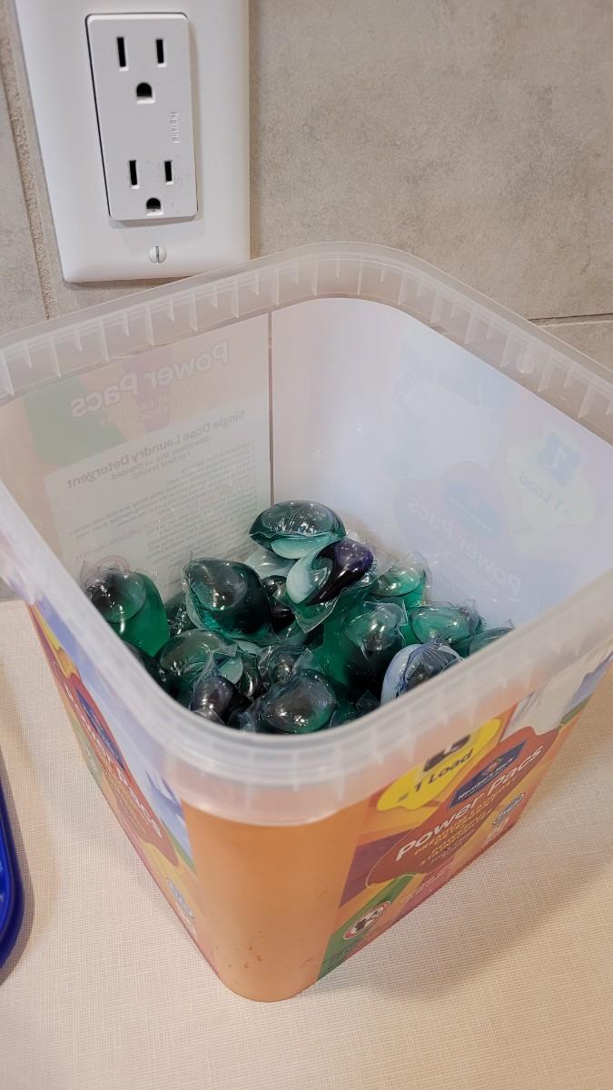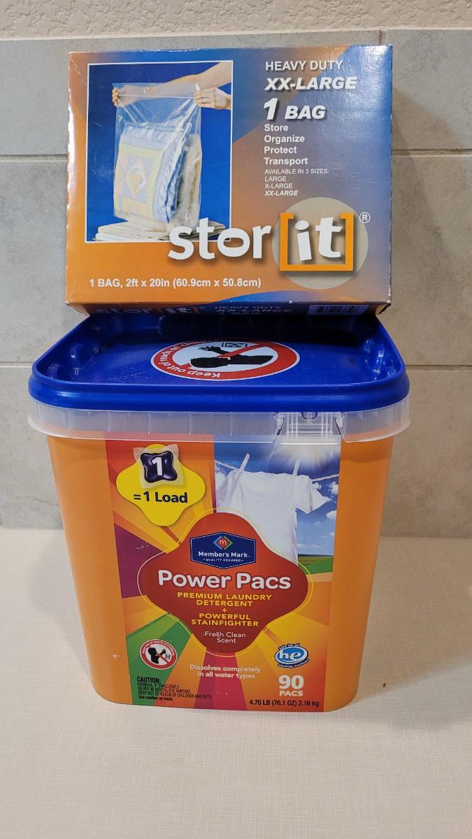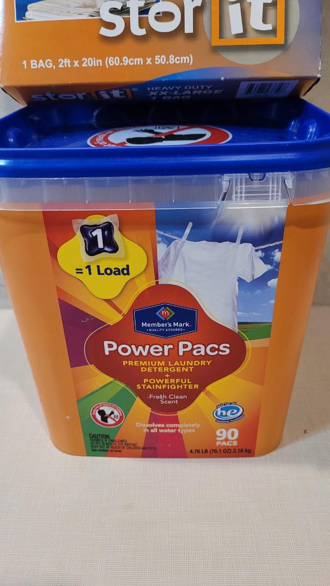Lot 260: 1/2 Full POWER PACS Laundry Detergent Bucket + New XXL Storage Bag