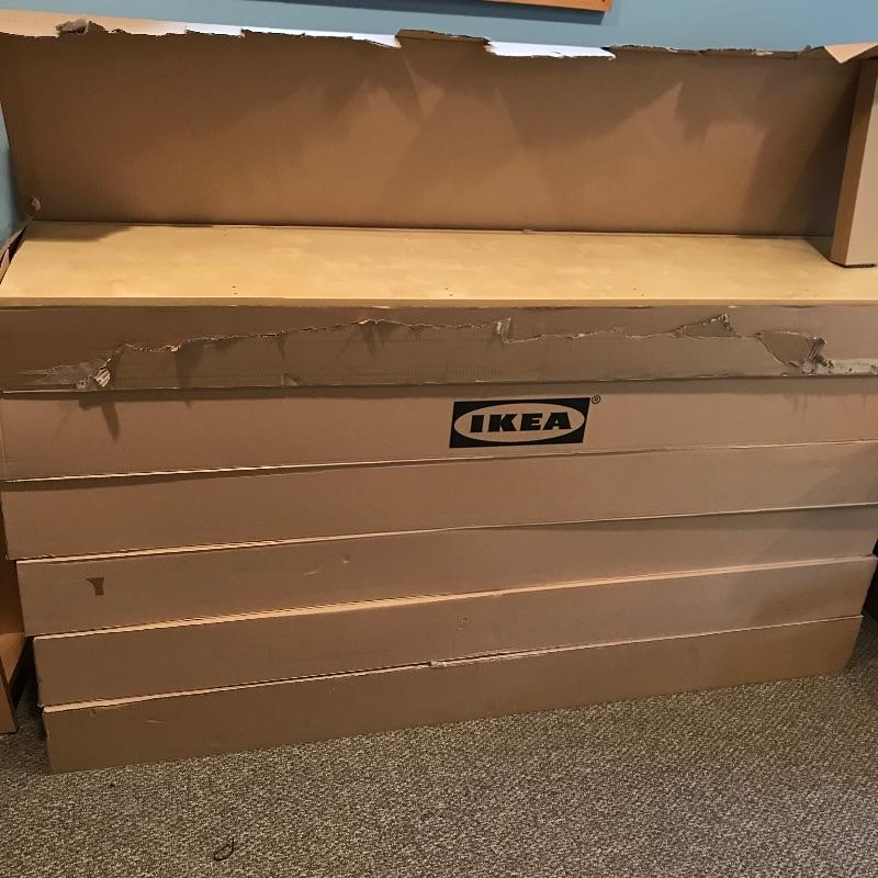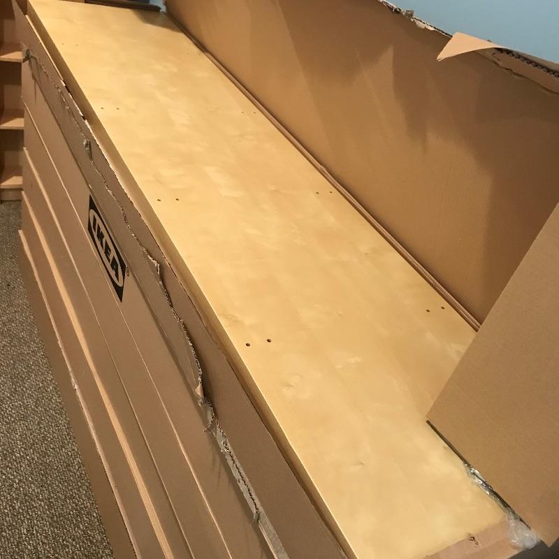 6 IKEA Expedit shelving units still new in boxes and with instruction booklet and hardware. Nice light colored wood finish will brighten up any dorm, apartment, office, or utility room, and keep your necessities organized. Each unit measures 69” H x 15” D. We opened one box to ensure contents. A quick internet search shows Expedit shelves seem to be sought after, many consumers were not thrilled when the Kallax shelf replaced the beloved Expedit. Local pickup only. Please bring help boxes are heavy. You will need to go up a flight of stairs to get these out of the house.