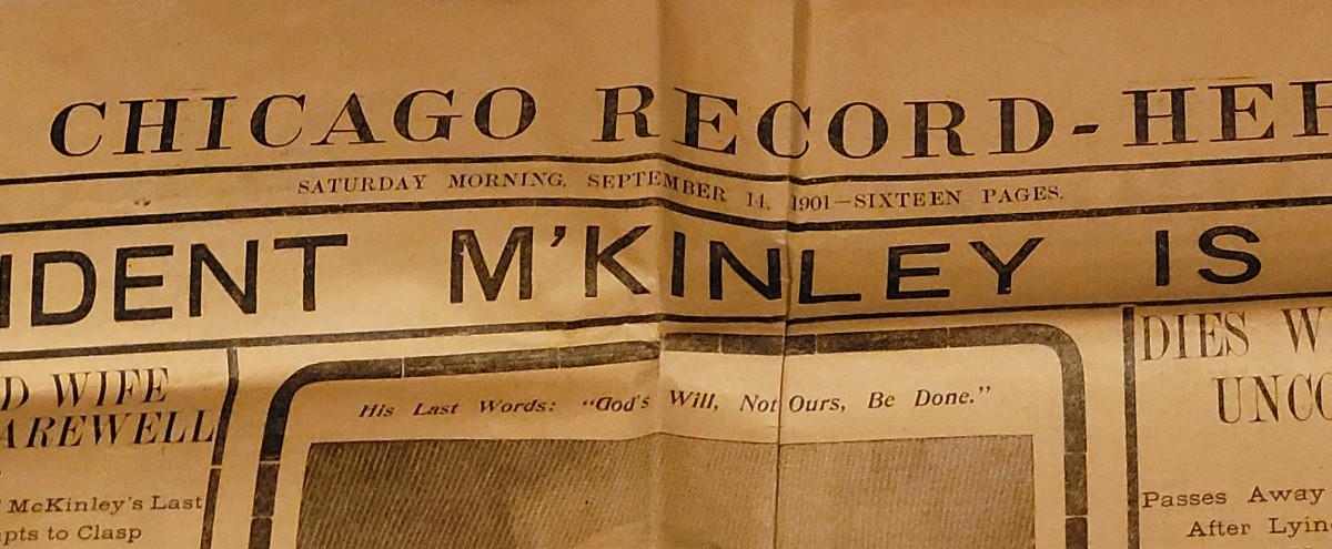 Lot 260: 1901 Chicago Record Newspaper announcing "President M'Kinley is Dead"