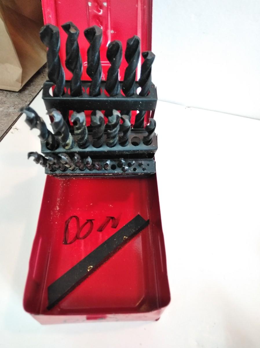 SPADE BITS AND DRILL BITS IN A METAL BOX