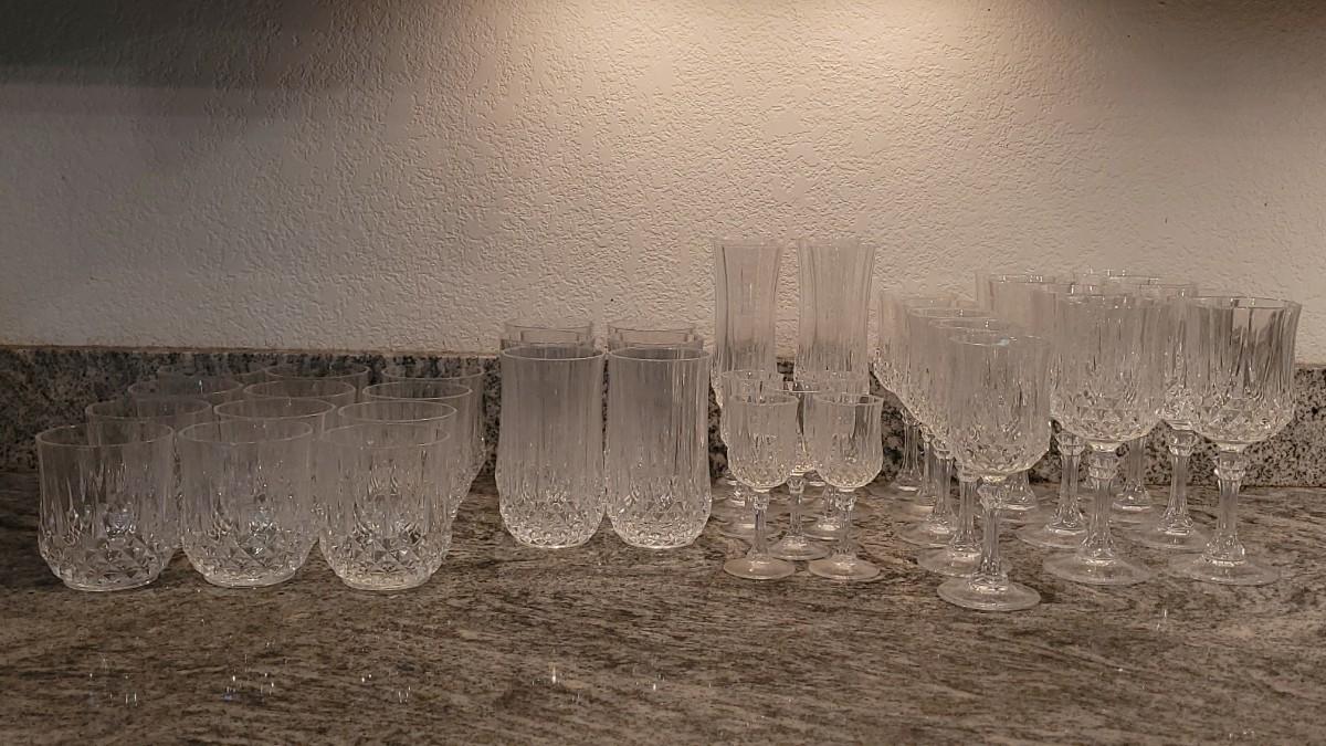 ☆☆Beautiful Set- 10 Red Wine, 7 White Glass , 4 Champagne Glasses , 5 Sherry Glasses, 6 Tumblers/Collins and 12 Low Balls☆☆