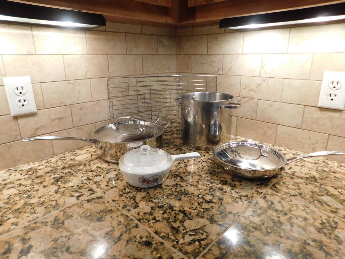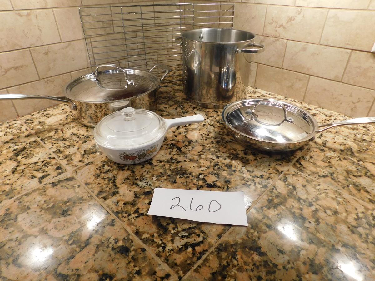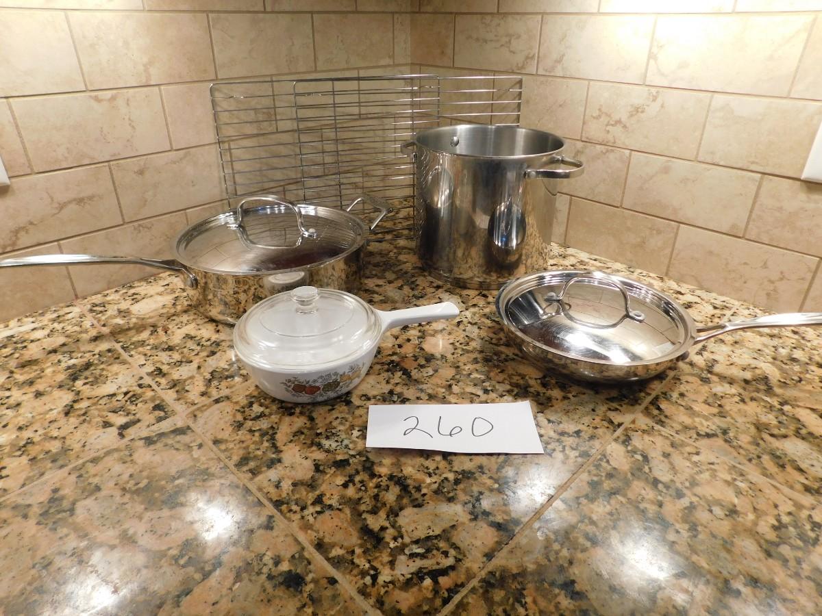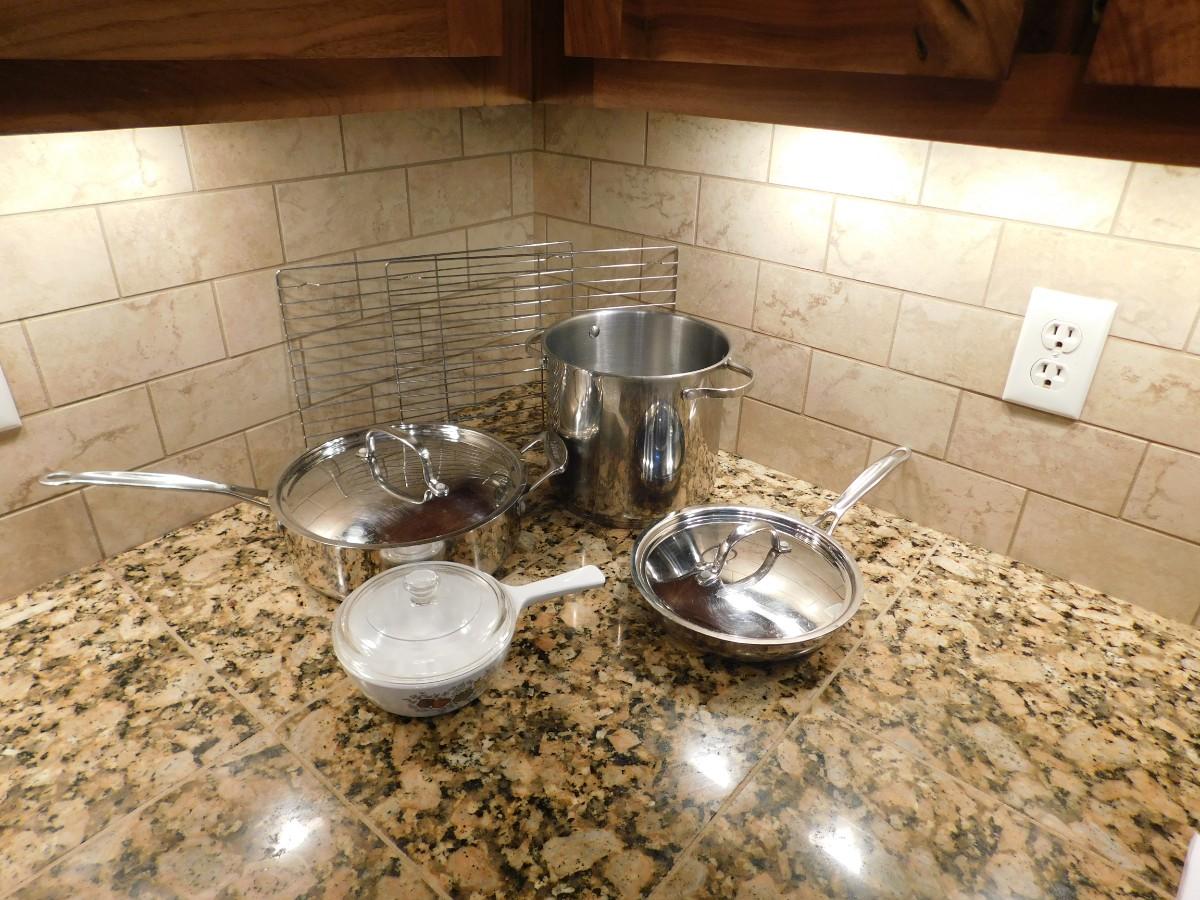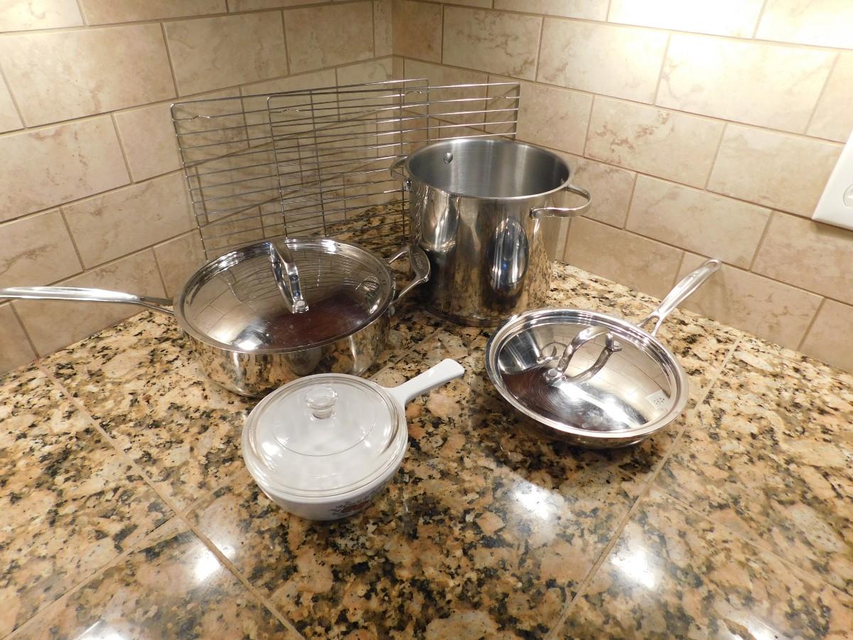 CUISINART PANS, PORCELAIN SAUCE PAN AND COOLING RACKS