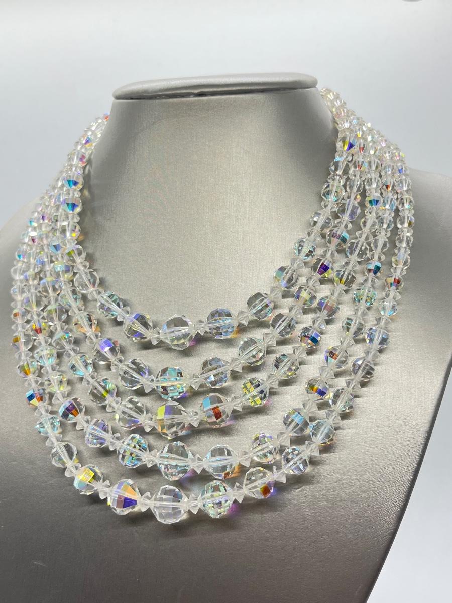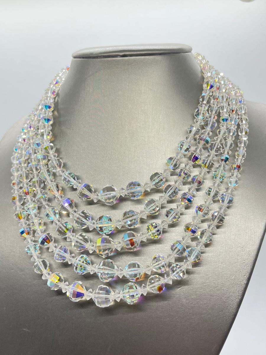 LOT 260: Vintage Delroy Five-Strand Aurura Borealis Crystal Rhinestone Necklace