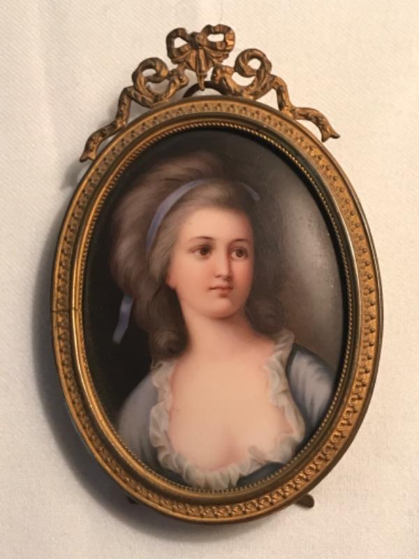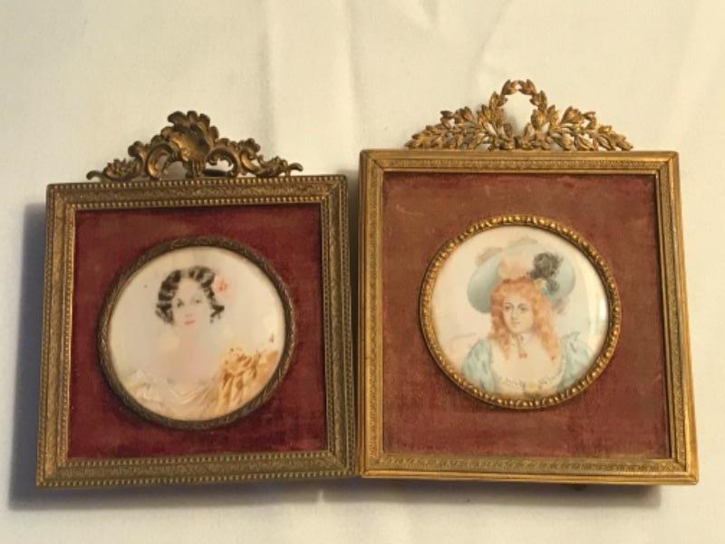 Most of these frame are antique brass. Three of them have painted porcelain portraits in them