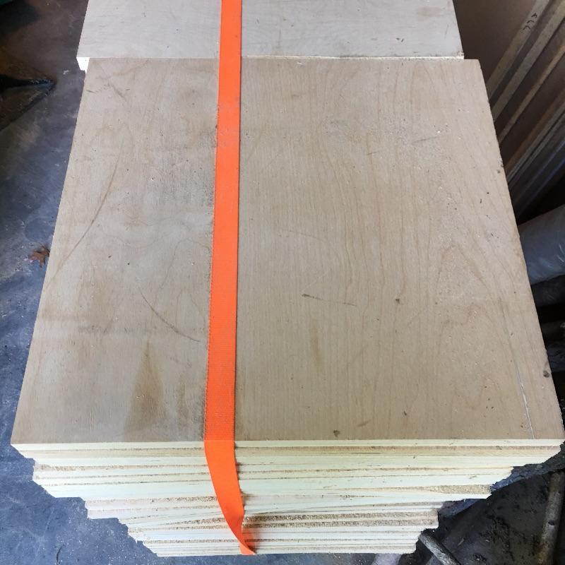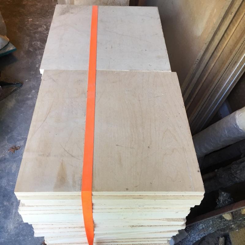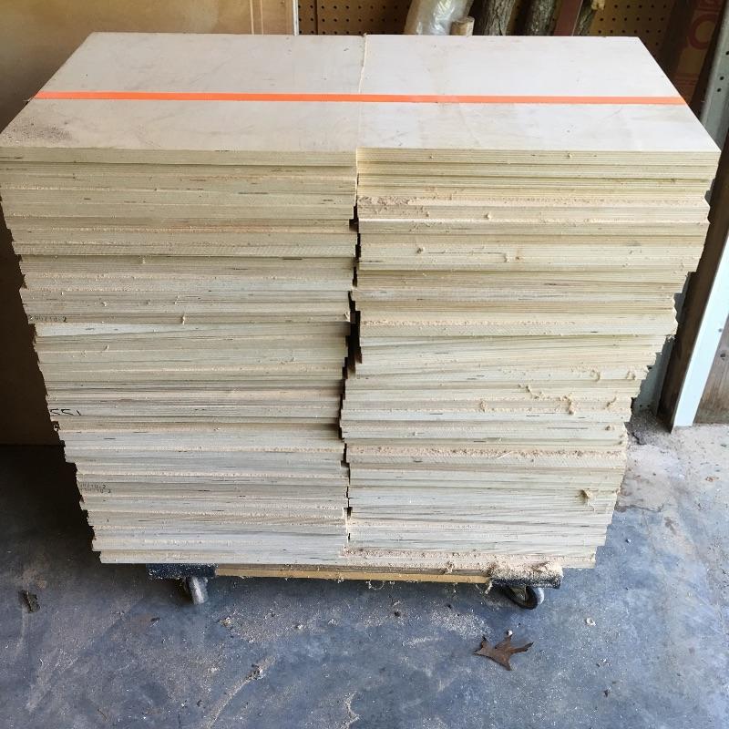 Eighty six pieces of plywood and a furniture dolly. Each piece measures 17.5” x 17.5” x .75.