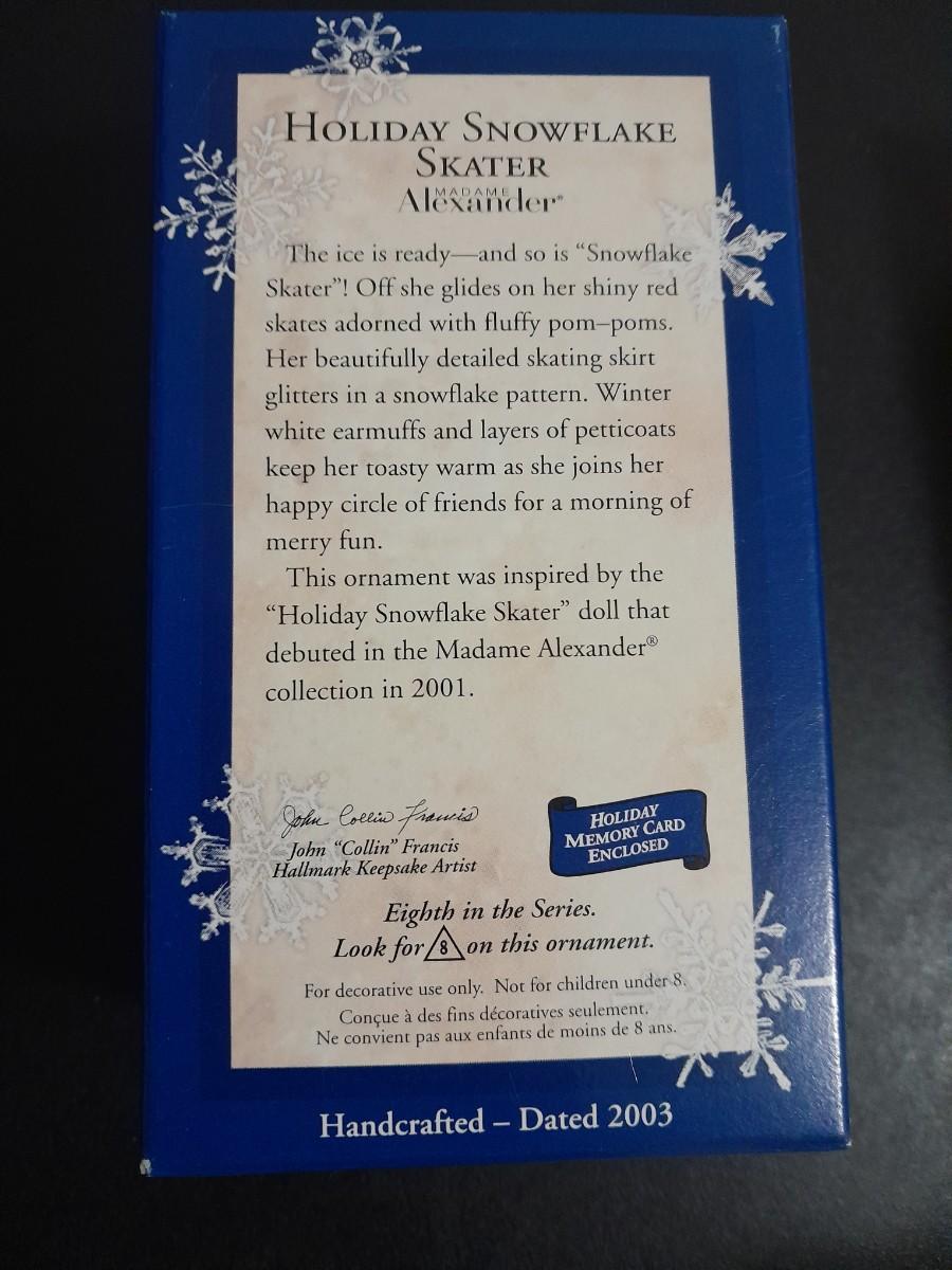 LOT 260 HALLMARK CHRISTMAS ORNAMENTS MADAME ALEXANDER AND SNOWFLAKE SKATER