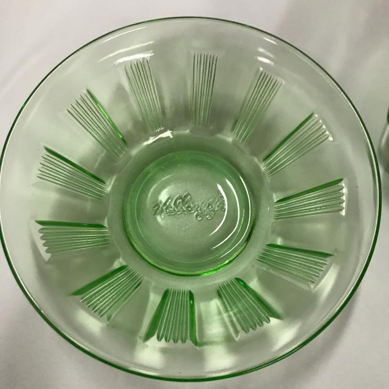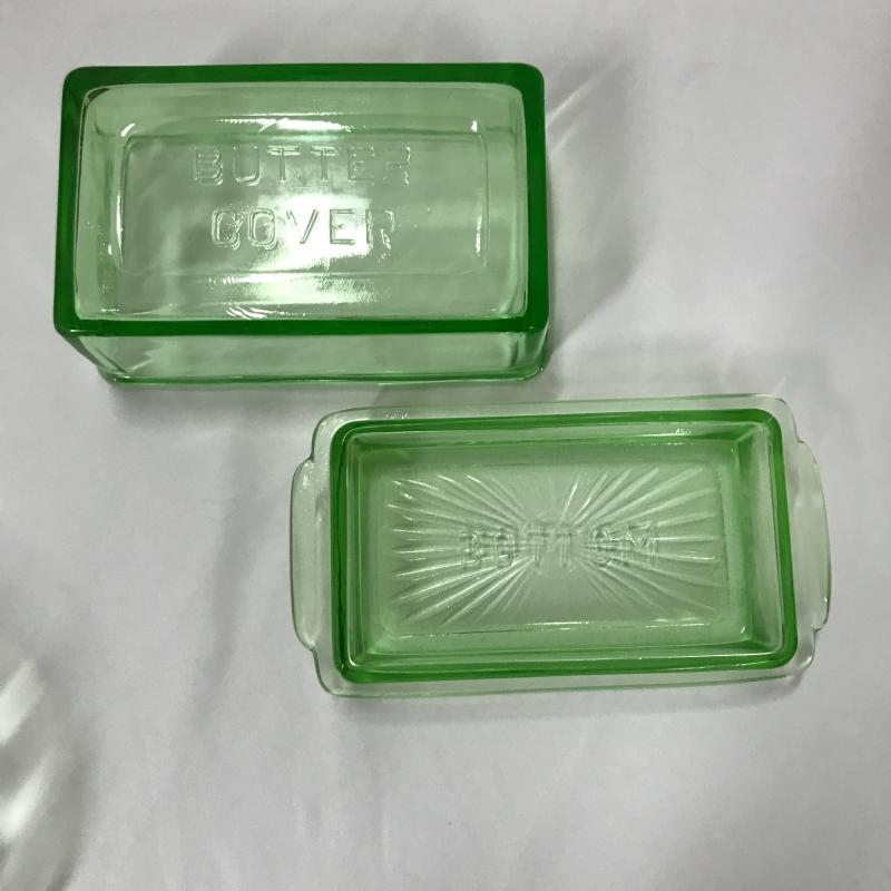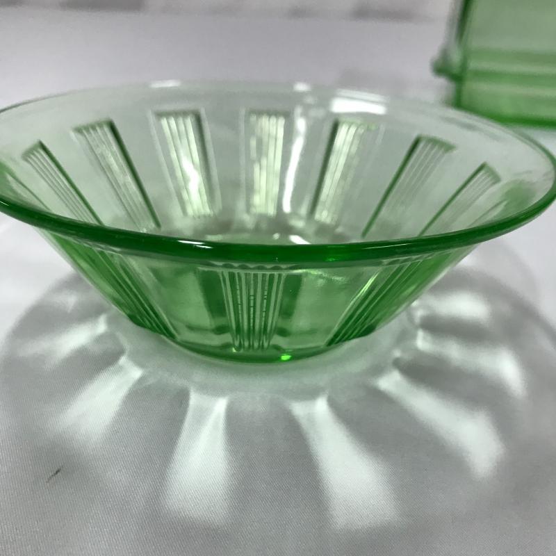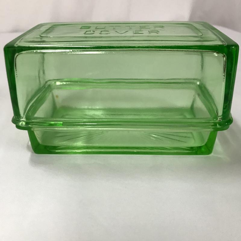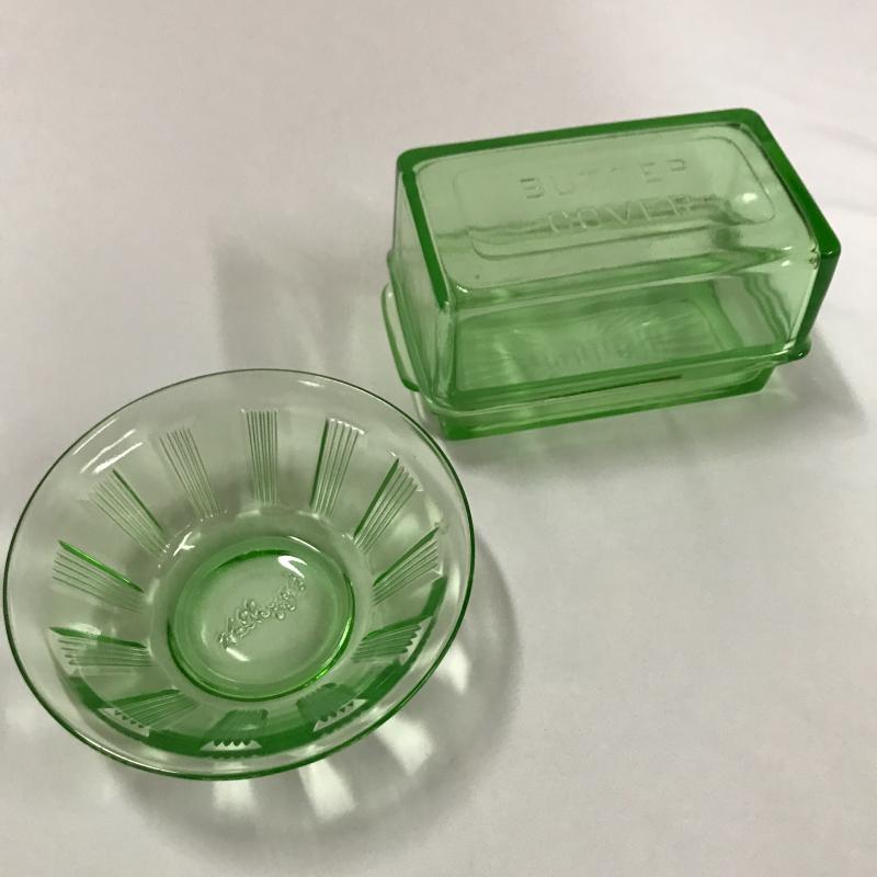 Kellogg’s Wagon Wheel Depression Glass Bowl measures 5.5” d. Covered butter dish measures 6.5”l x 3.5”w x 3.5”h. Shipping or local pick up in Asheville