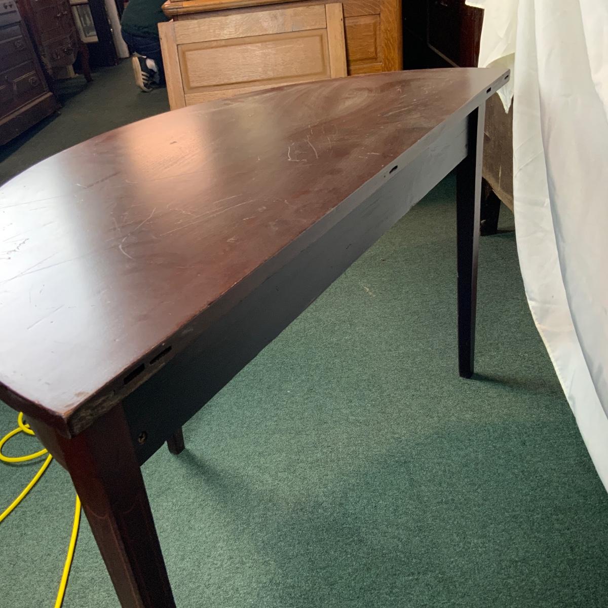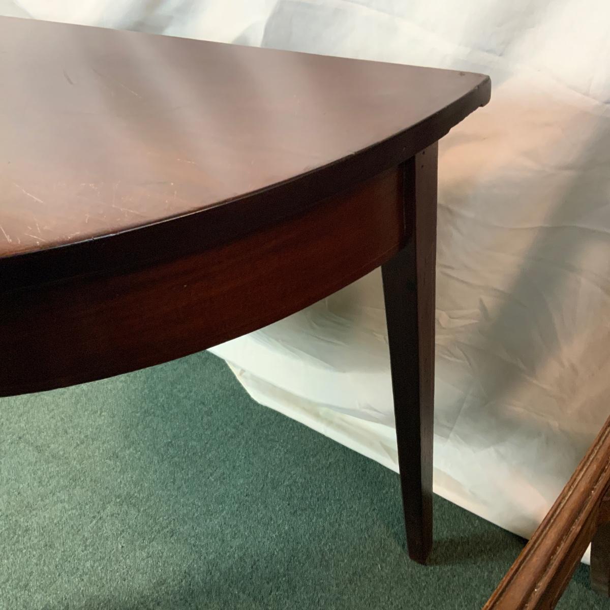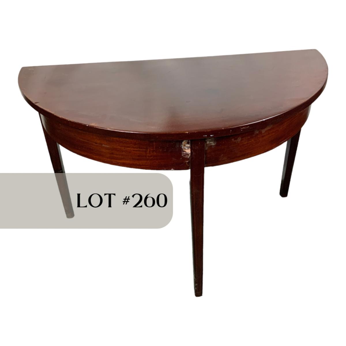Mahogany half table. This is a commonly requested and highly sought after item. If you can do a little restoration work, you could be one of the lucky ones that has a half table. //::\\ Please see photos for details and condition. No attempt has been made to hide any imperfections. All items listed in this auction are warehouse items, and need to be cleaned. A majority of the items need restoration as well. All items are sold AS IS and WITHOUT GUARANTEE. If you are uncertain about an item, DO NOT BID. Due to the nature of this online auction in-person inspection is HIGHLY recommended. All Sales are FINAL. Pick Up Times are FIRM. Please confirm with your own schedule that you can pick up in the scheduled times listed in the Terms and Conditions. Any questions please message the auctioneer. DO NOT Contact The Harp Gallery.