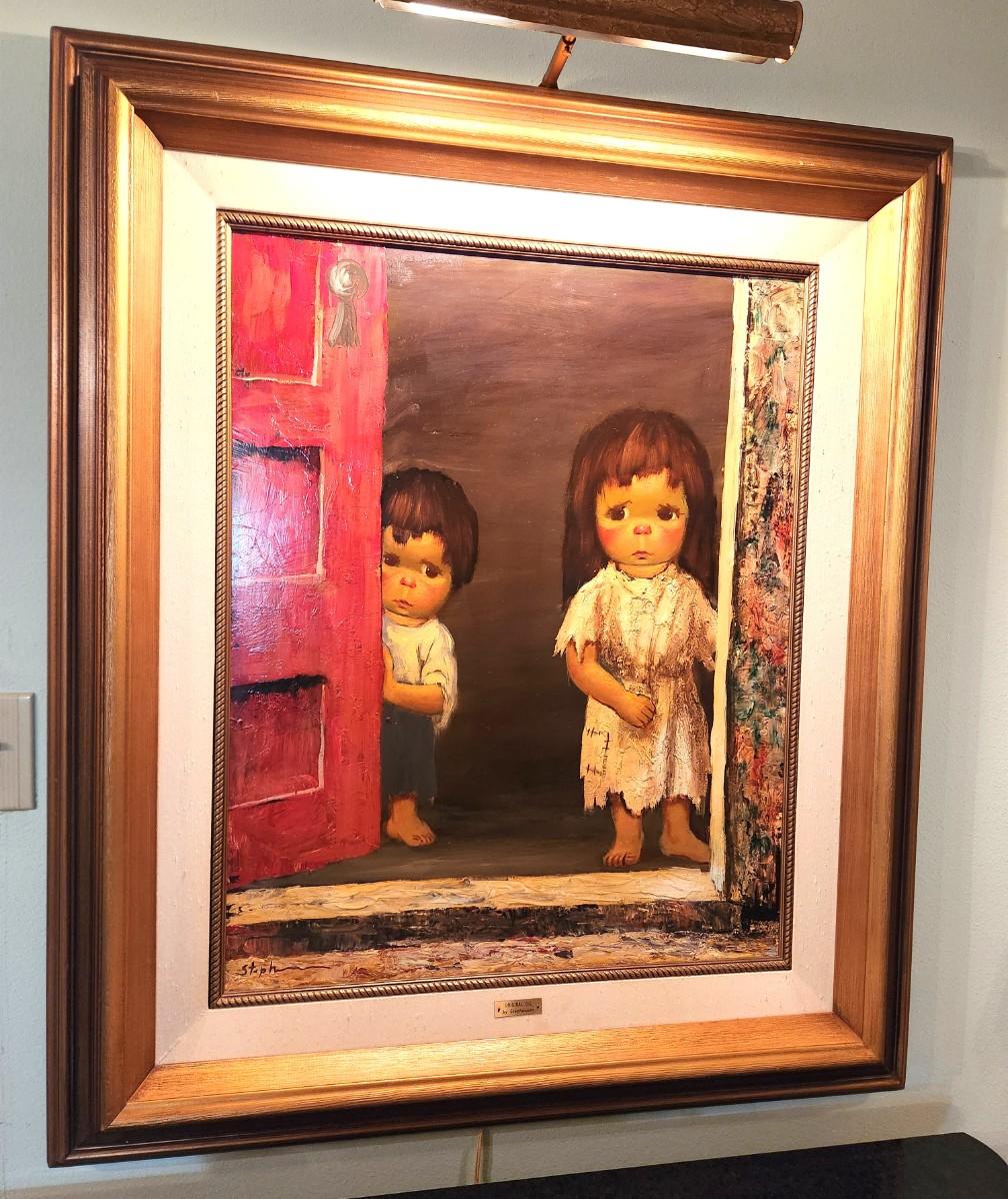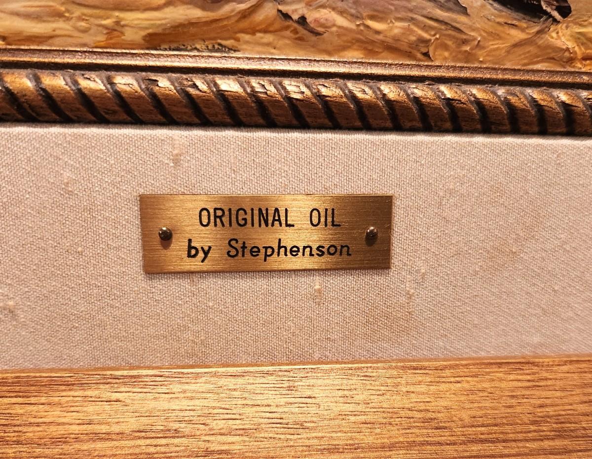 Original framed oil by Listed Artist Harold C. Stephenson, died 1974. Stephenson was an Ohio artist known for Hollywood portraits and "Big Eye" children (a fad in the 60's). 35" x 41", excellent condition. His works sell at auction for $300-600.