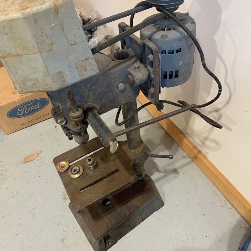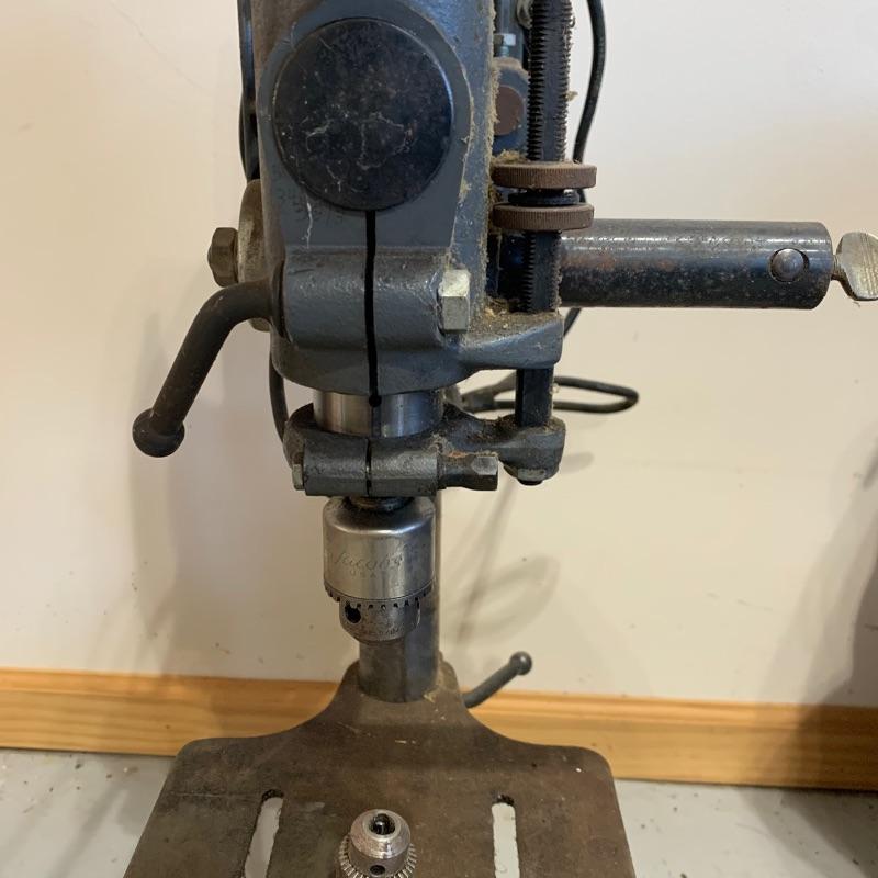 This Drill Press appears to be fully in tact and runs when plugged in. Series and serial number in pix for reference. Piece measures 12” x21” x33.5”. Local pick up only.