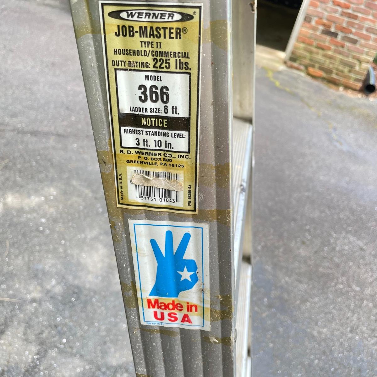 Two Werner Aluminum ladders. Both are fairly lightweight and appear very sturdy. The 6ft JobMaster ladder has a 225lb duty rating and a painter’s tray. The 10’ extension ladder also appears in great shape and easy to move about. See images. Local pick up only.