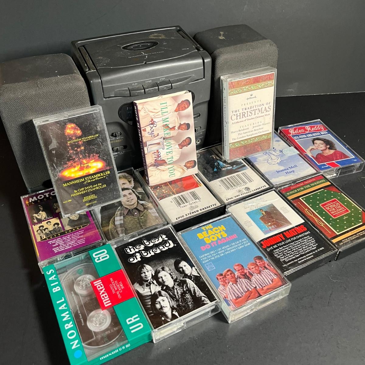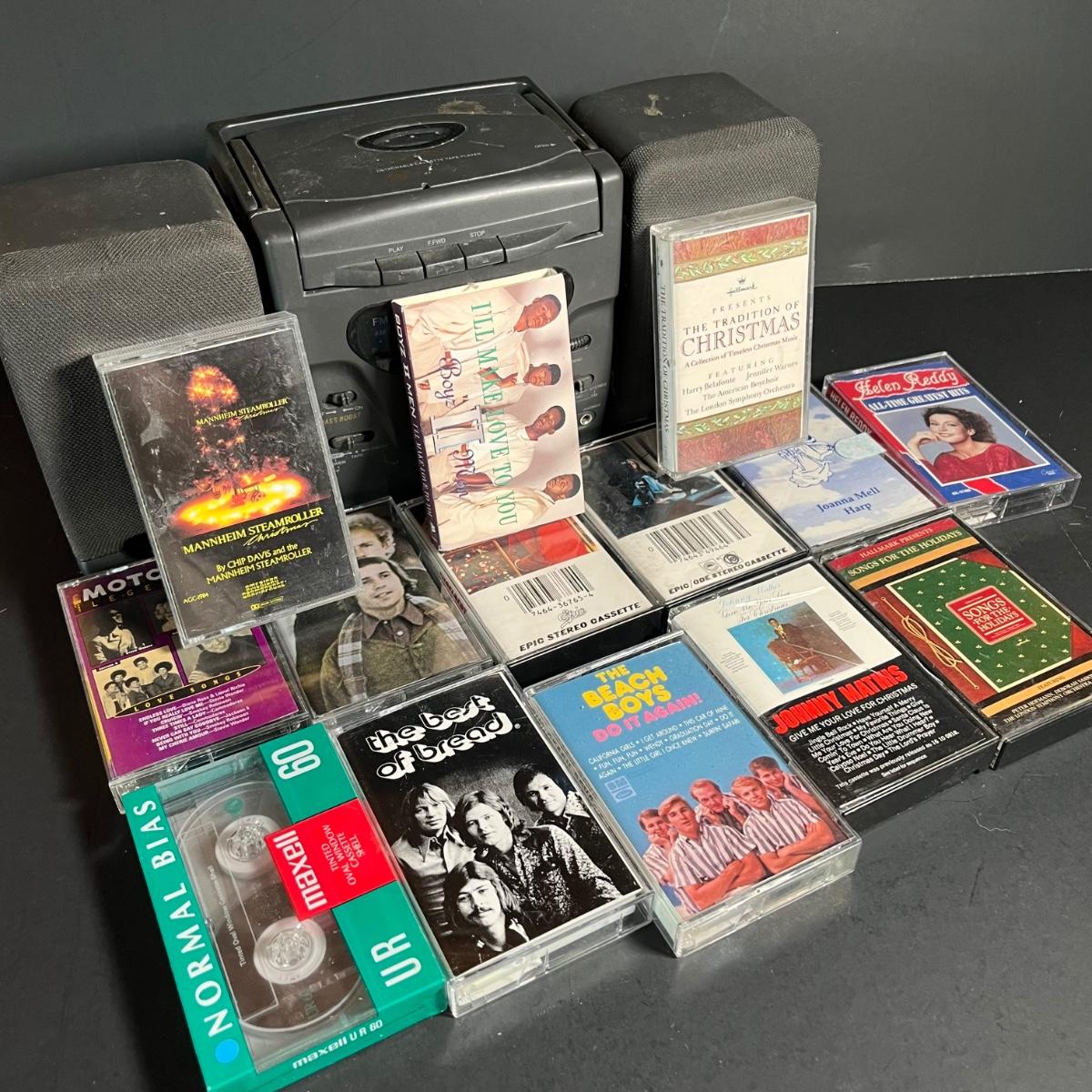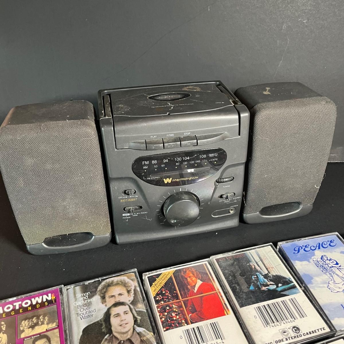 LOT 260: White Washinghouse Cassette Player & Various Cassettes - Beach Boys, Simon and Garfunkle & More