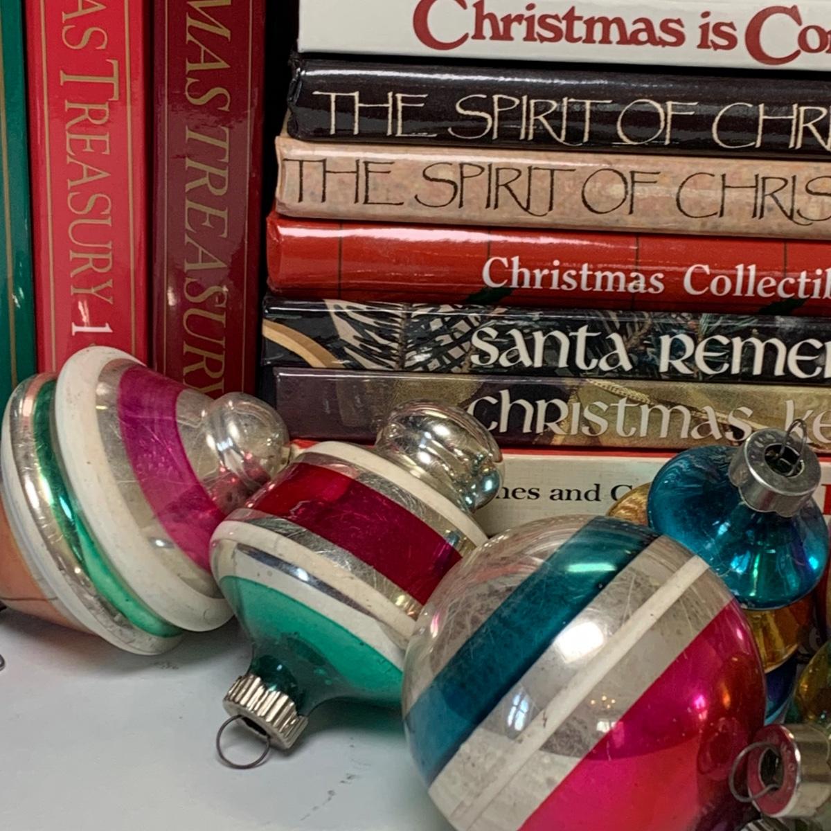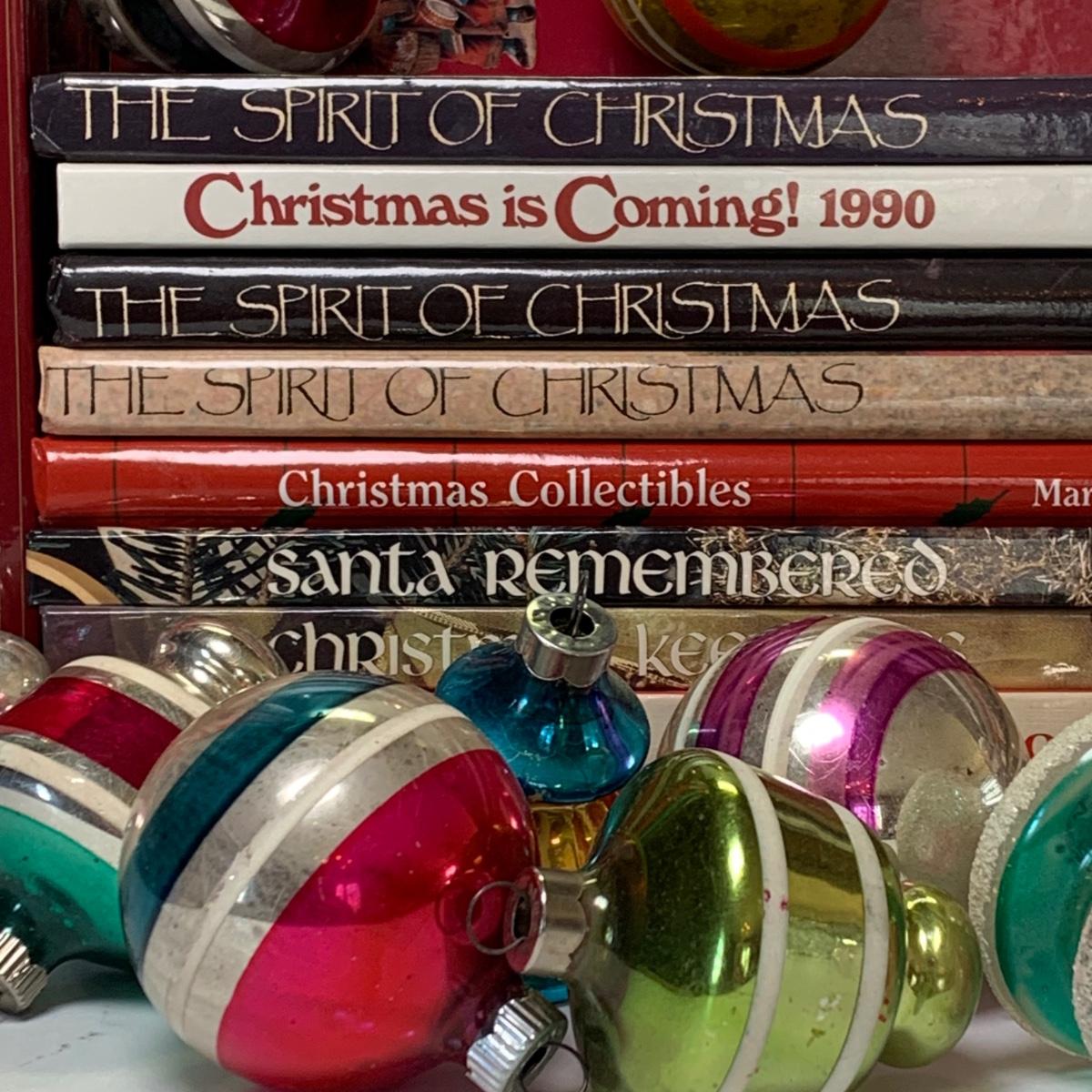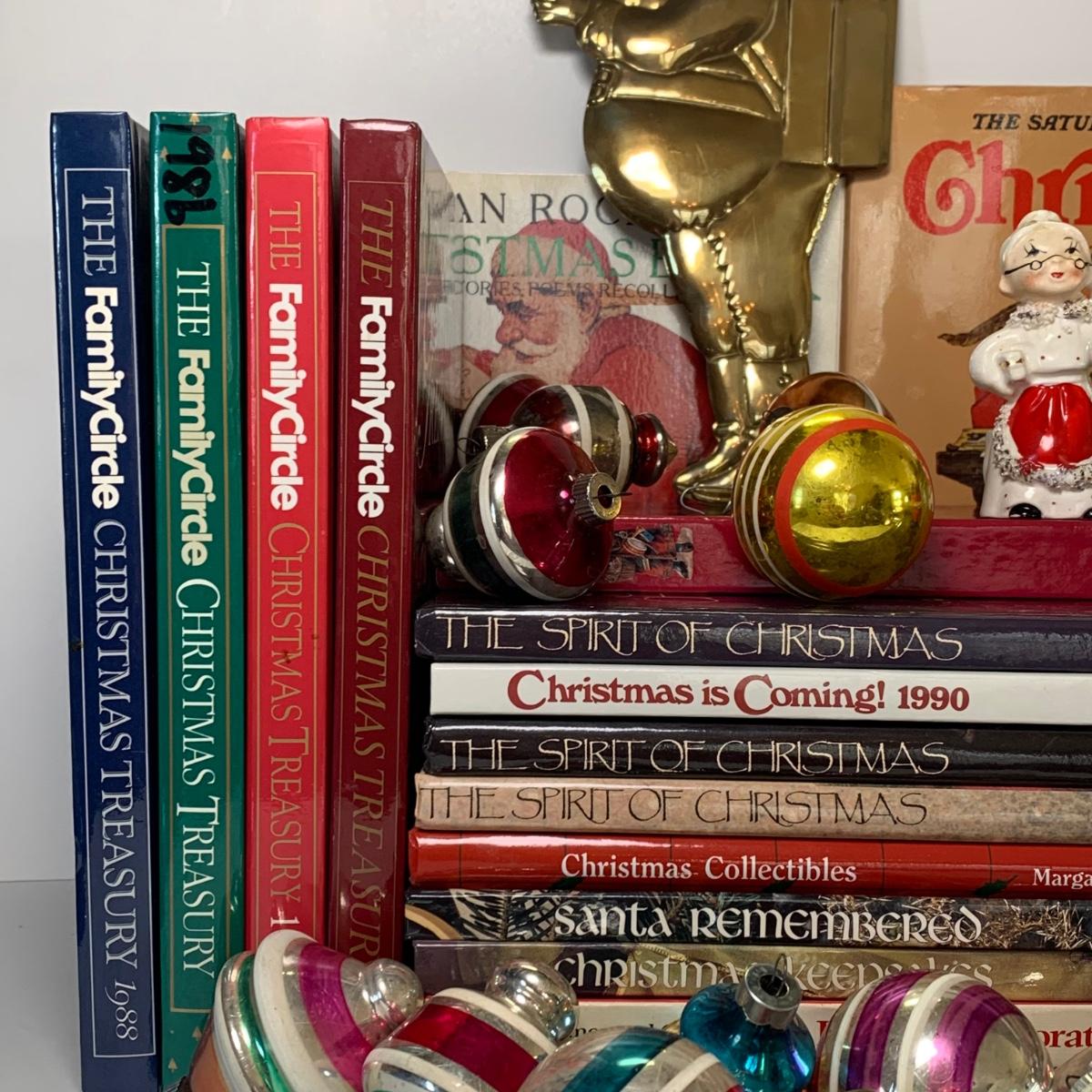 Includes vintage Christmas balls, Family Circle Christmas Treasury books, 'The Spirit of Christmas' books and more.