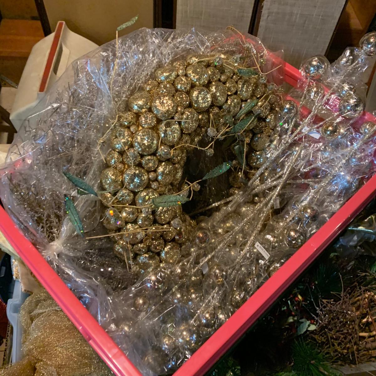 LOT 260R: Basements Finds: Greens, Swags, Gold Wreath and More