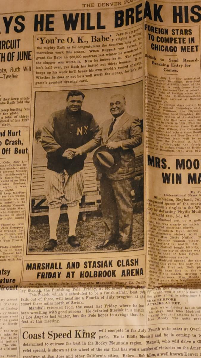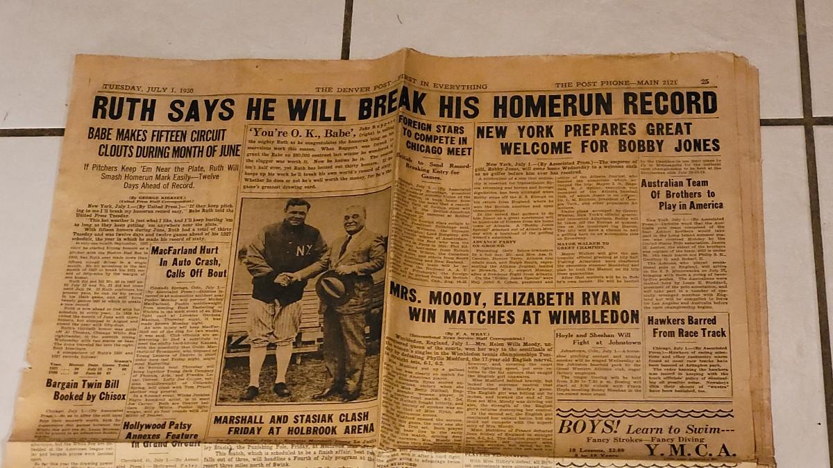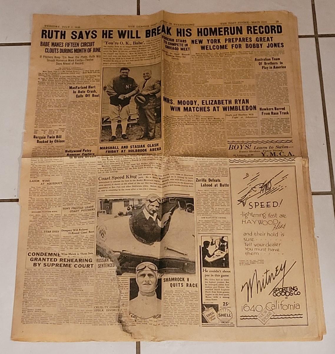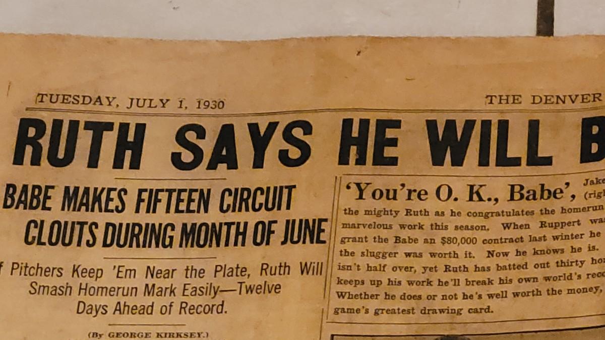 Lot 261: 1930 Denver Post "Ruth says he will Break His Homerun Record" Newspaper