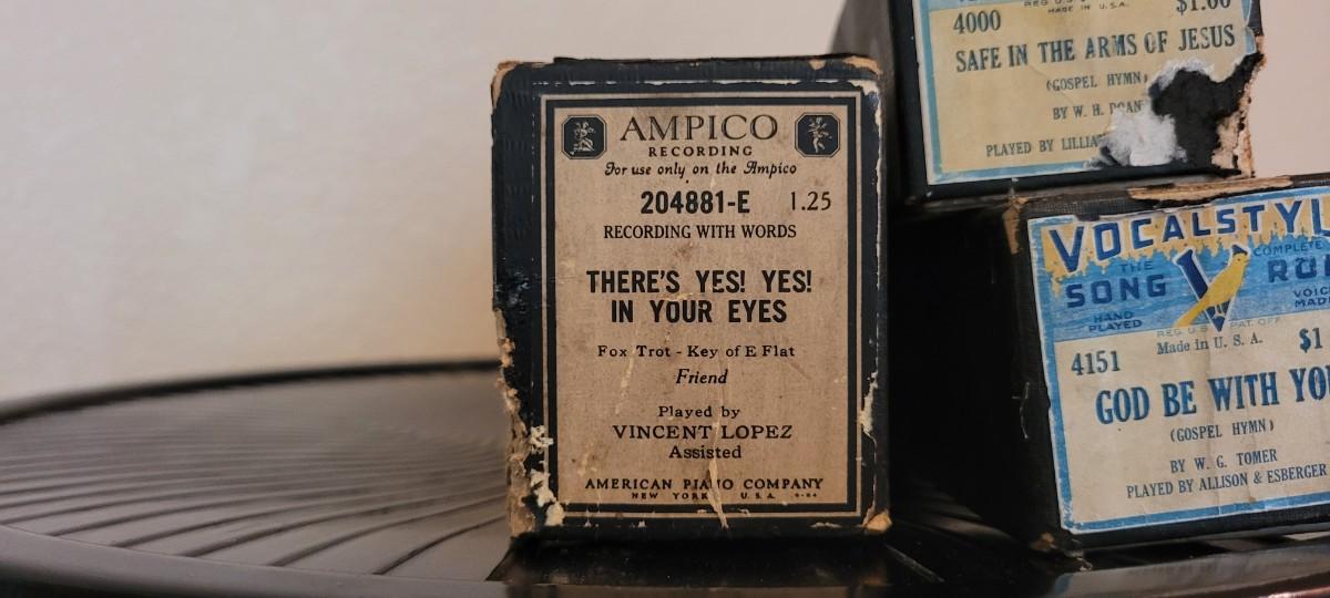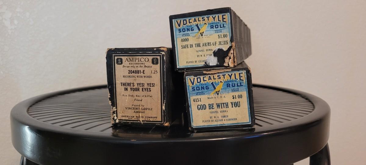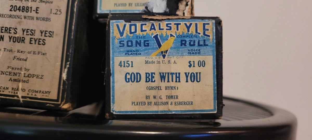 Assortment of (3) Antique Piano Word Rolls - "There's YES YES In Your Eyes", "God Be With You", "Safe in the Arms of Jesus"