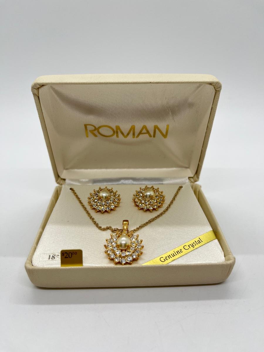 LOT 261: Roman Genuine Crystal 18" Necklace & Earrings Set
