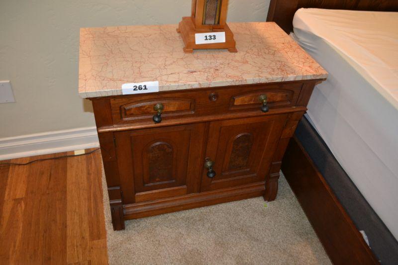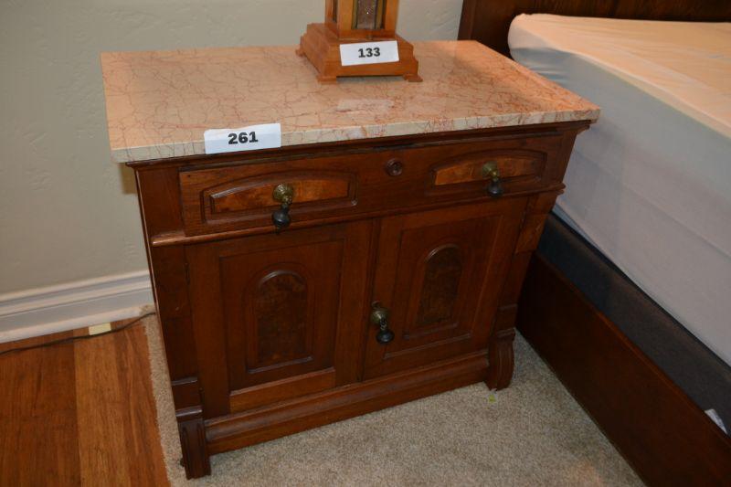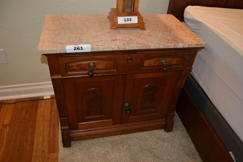 LOT 261. ANTIQUE MARBLE TOP CABINET/SIDE TABLE/NIGHT STAND