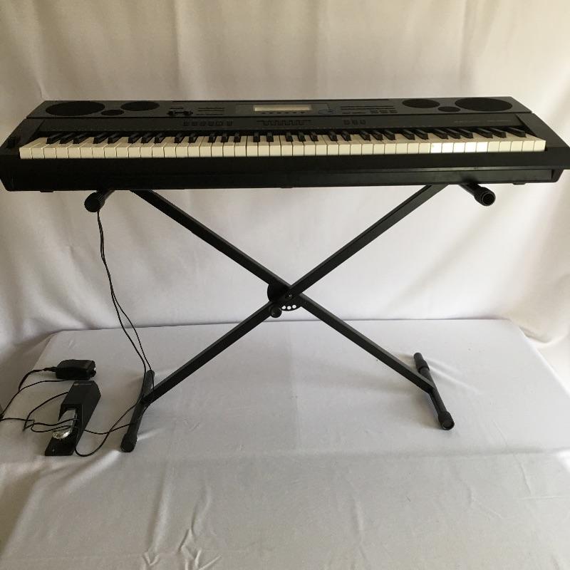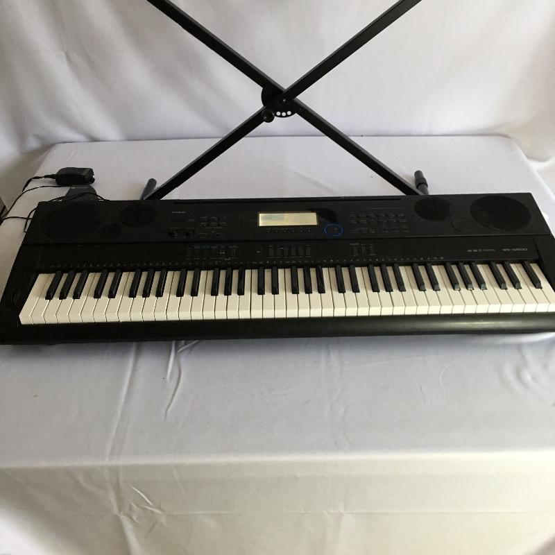 Casio W-6500 keyboard with stand and foot pedal. Get your groove on with this awesome keyboard. Keyboard measures 15,75” x 45” x 5.75”.