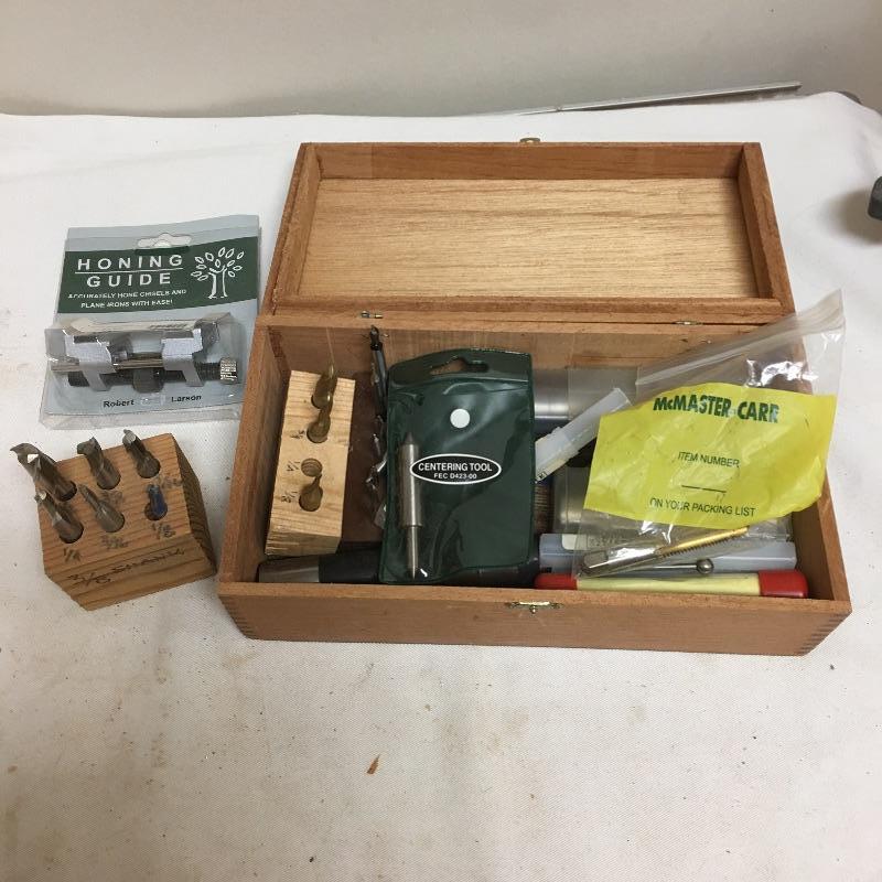 Lot includes Noga deburr tool, 1/8” and 1/4 collet, centering tool, honing guide, selection of 3/8” shank bits and more. Will go great with lot 260.