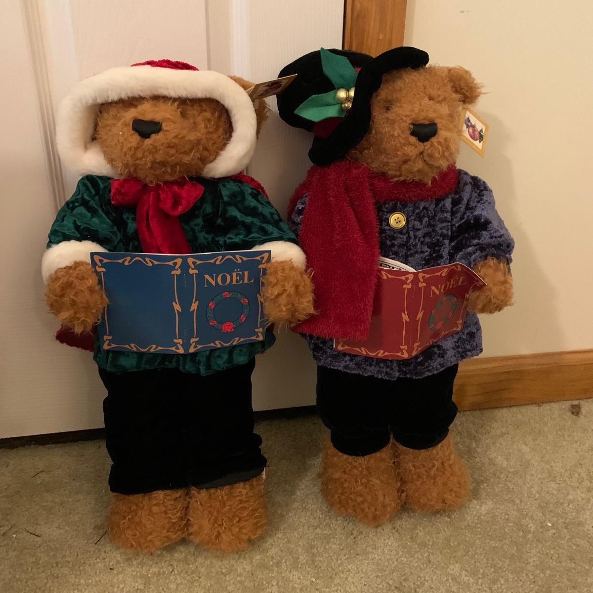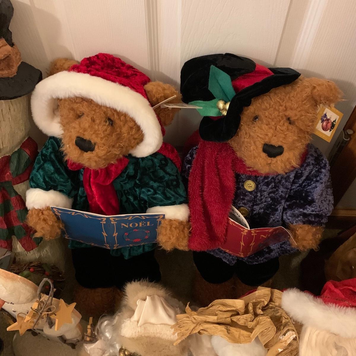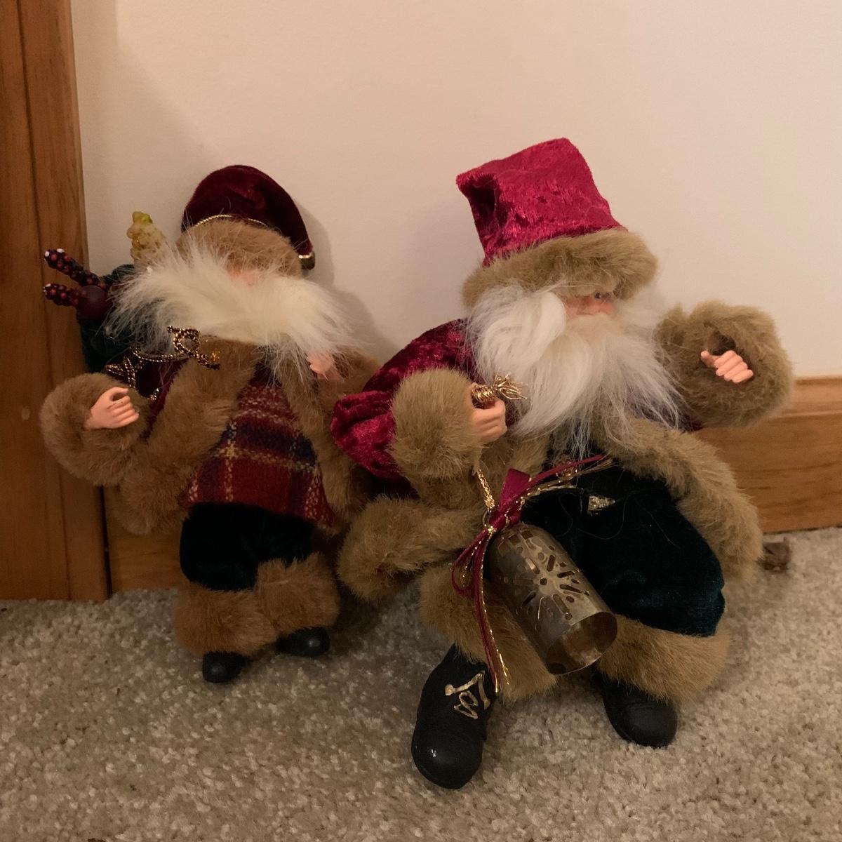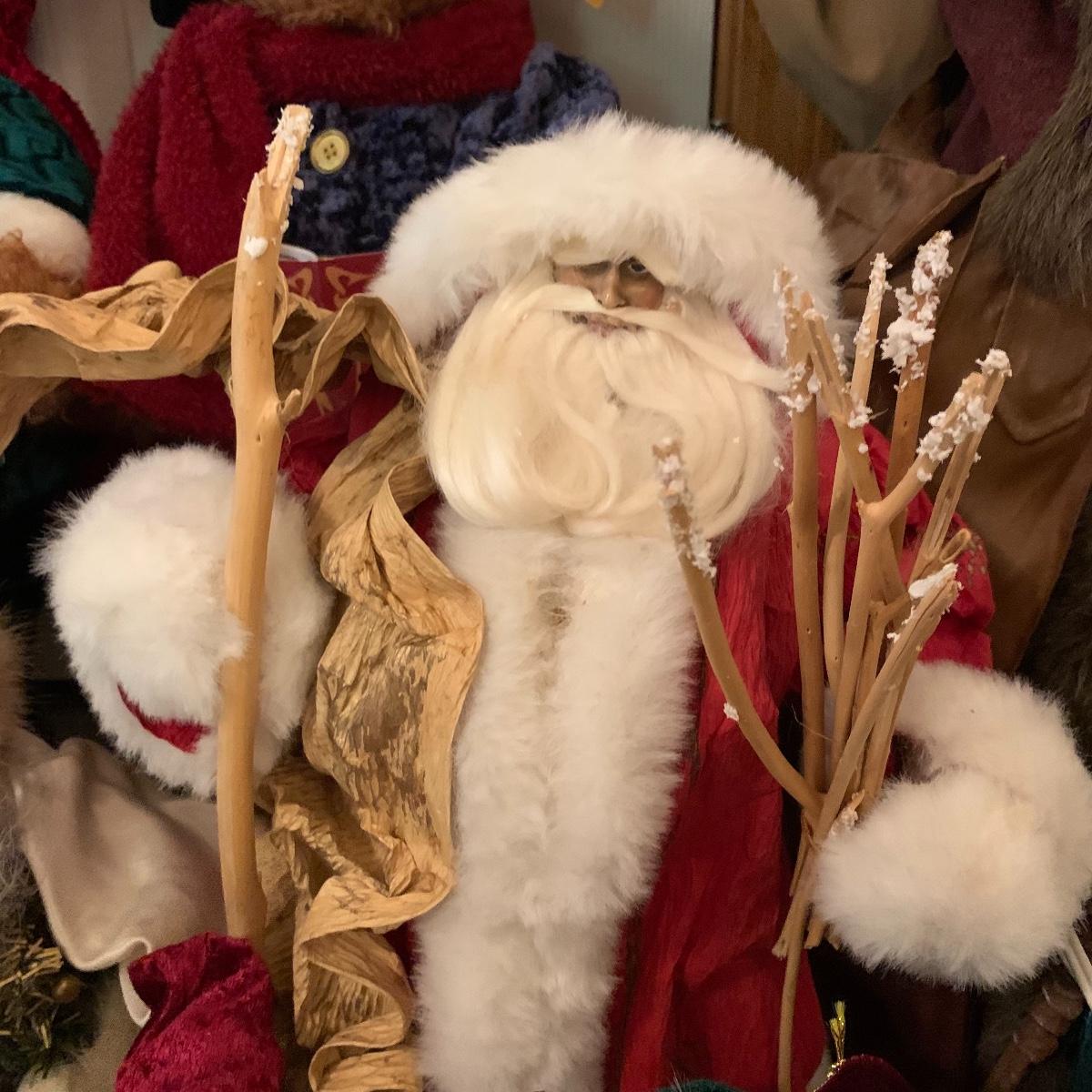In this lot you’ll find a large collection of Christmas figurines. The tallest is a hooded Santa that measures about 27” tall. The smallest measure about 7”. There are approximately 16 Santas, 3 snowmen, two bears, & two Christmas trees. One tree plugs in and lights up. The other is a candle. Some figurines are wood, some fabric, and some ceramic. They all appear to have been stored carefully and well taken care of. Shipping available but please note that it would be a very large and costly package.