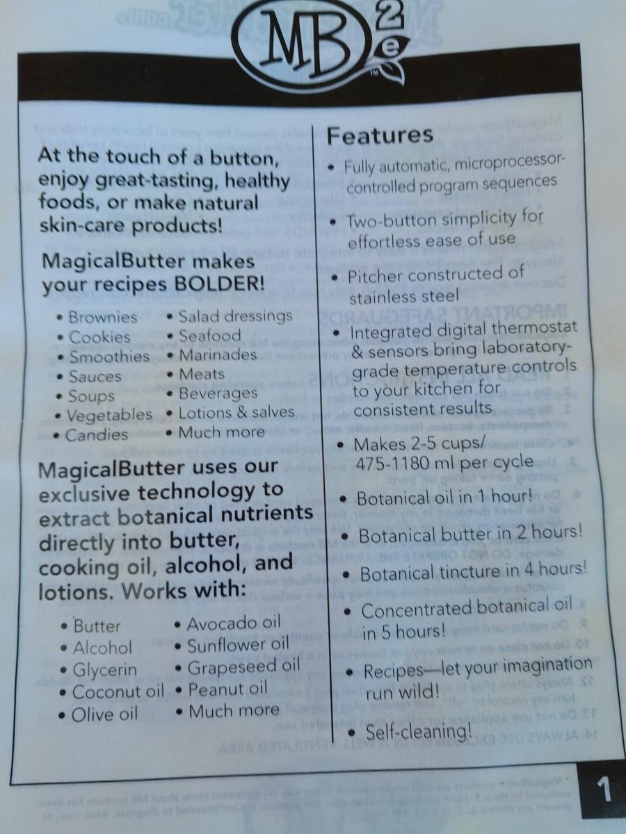 The MagicalButter MB2e is the world’s first countertop botanical extractor, designed for infusing the essence of healthy herbs into butter, oil, tinctures, lotions, and more! Combining an immersion blender with a programmable thermostat and heating unit, the MB machine is designed to create incredible recipes and botanical infusions with little or no labor. The MagicalButter machine grinds, heats, stirs, and steeps your herbal extract, all at the correct time intervals and temperature for a perfect infusion every time. As a result, you achieve your desired infusion easily, safely, and consistently.