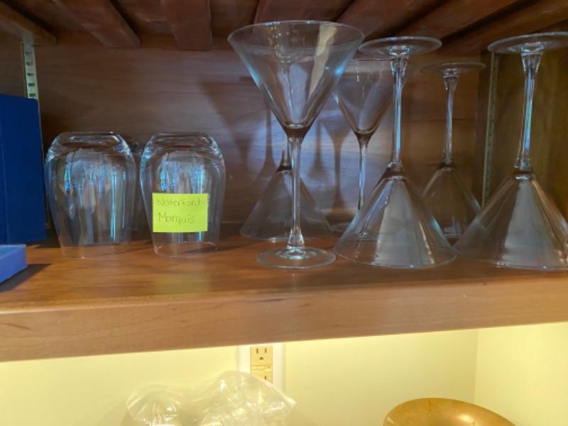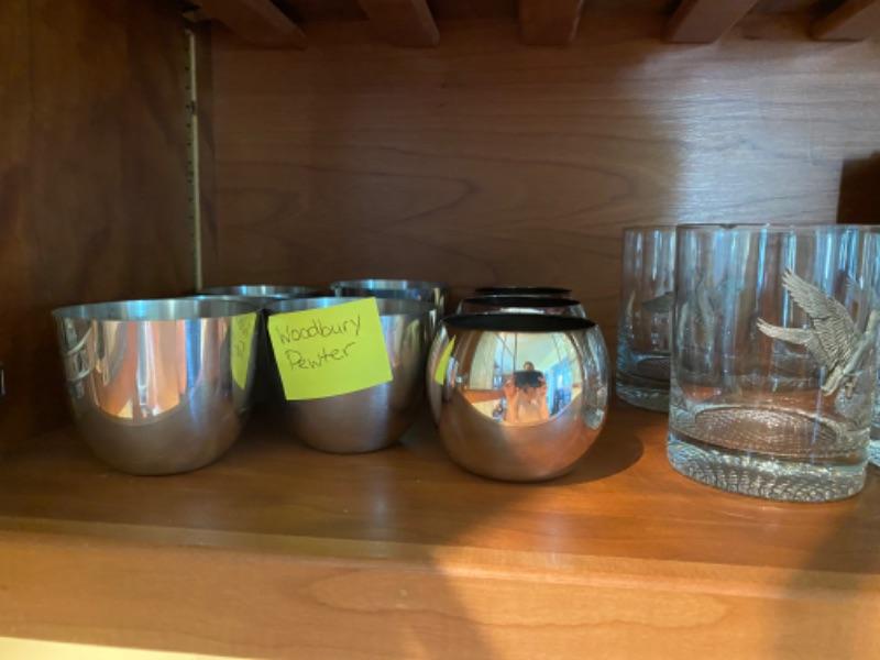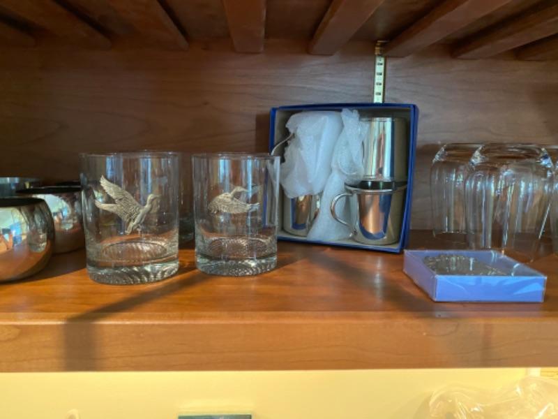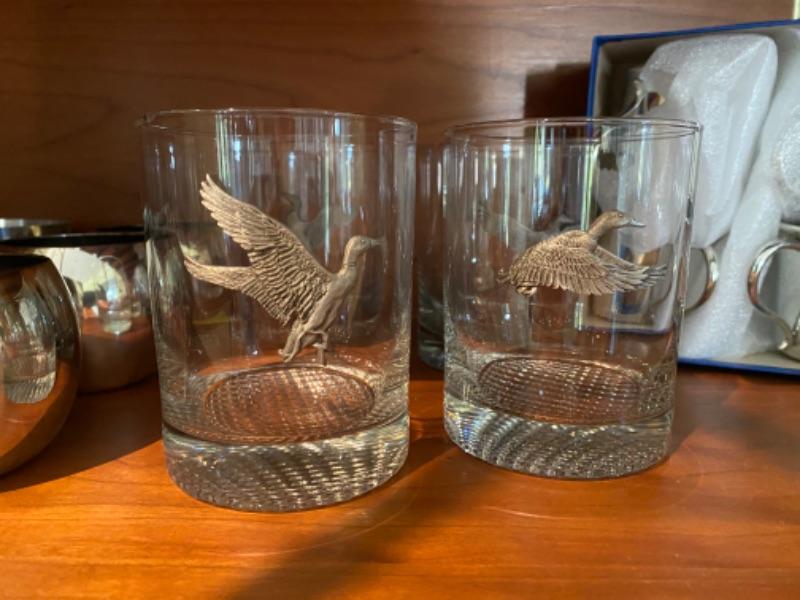 Set of Waterfowl and Pewter Bar Glasses with 4- Waterford Marquise Old Fashioned