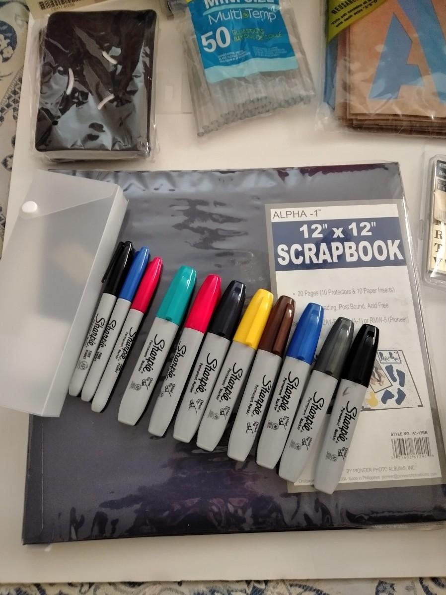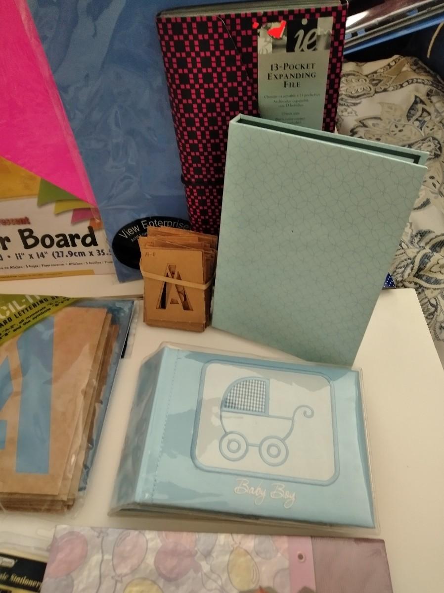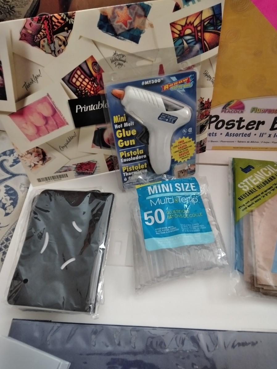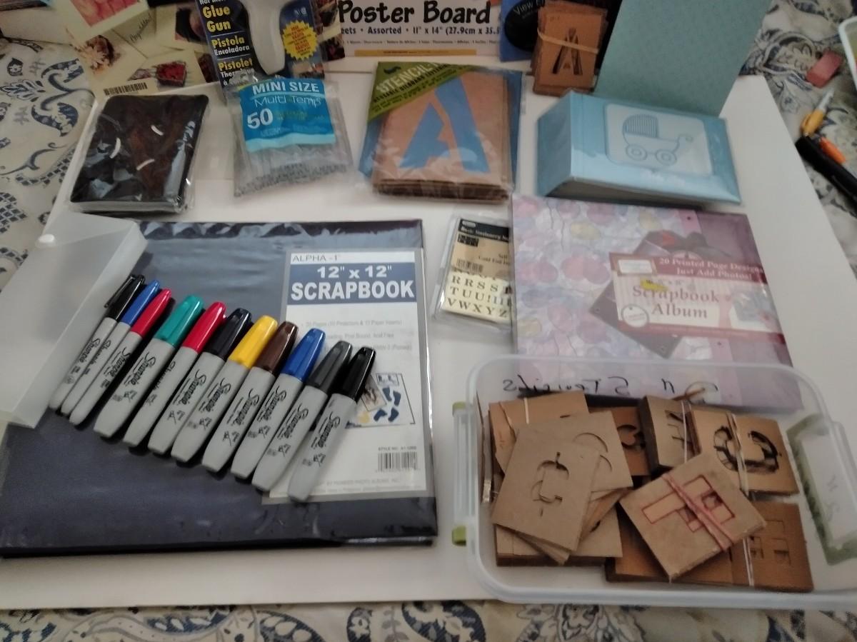 POSTERBOARD, SCRAPBOOKS AND PHOTO ALBUMNS, COLORED SHARPIES, STENCILS, GLUE GUN AND GLUE STICKS, LETTER STICKERS, AND MORE