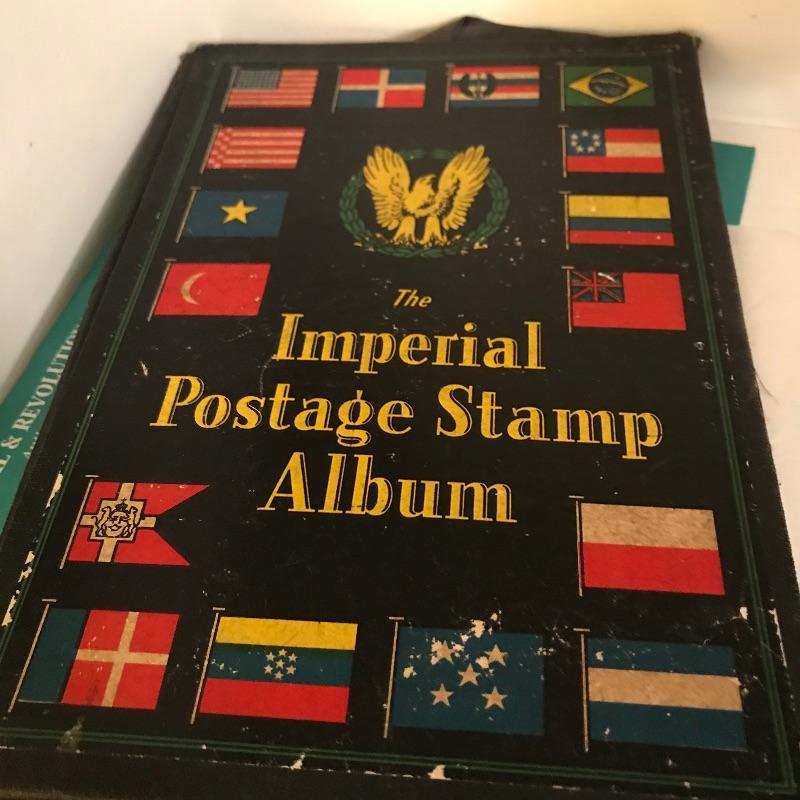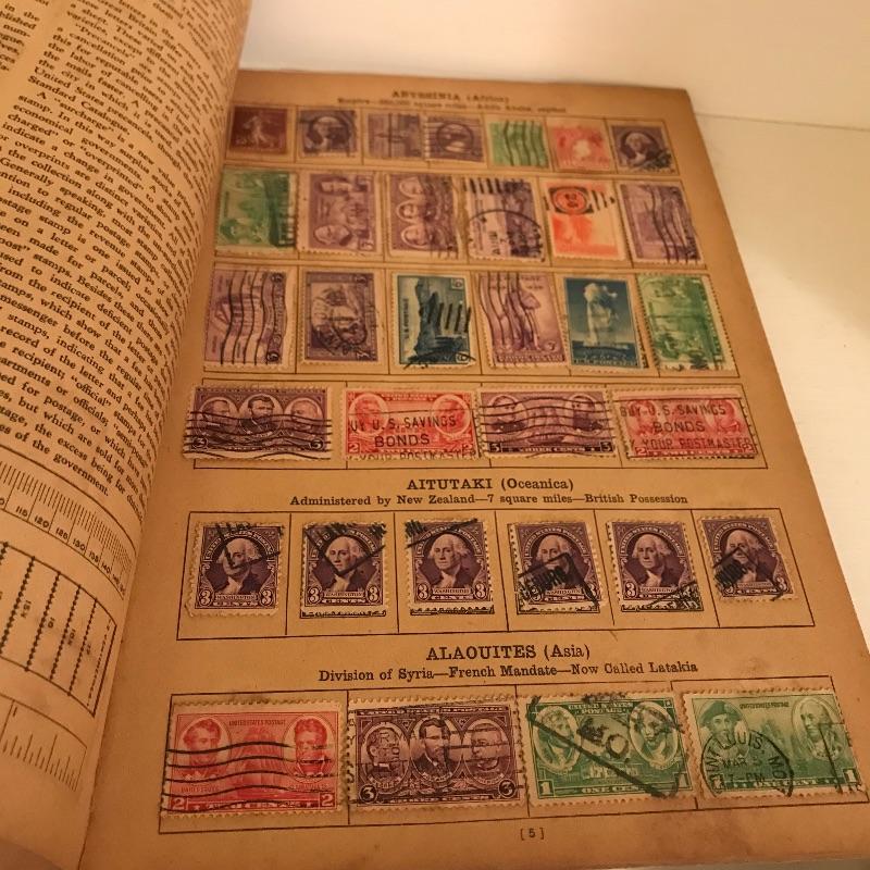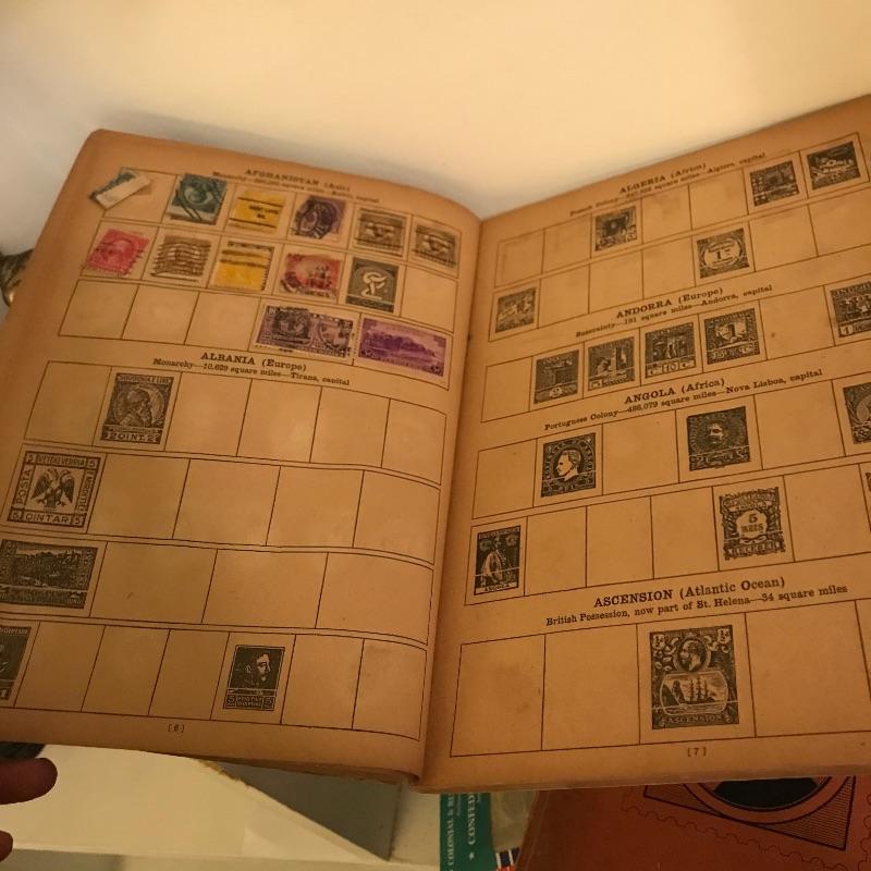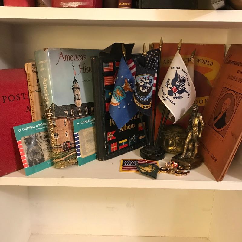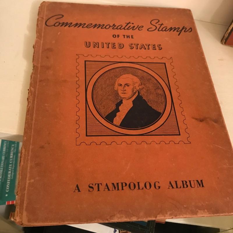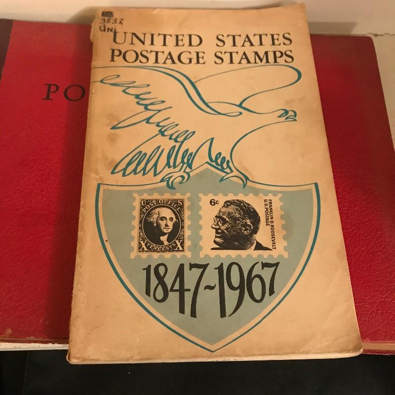 Interesting group of collectible stamp books that have just begun to be filled. Lot also contains pins, button covers, a brass Lincoln statuette! The list doesn’t end there - a vintage desk flag display, replicas of colonial, revolutionary and confederate bank notes(replicas). See photos. Shipping available.