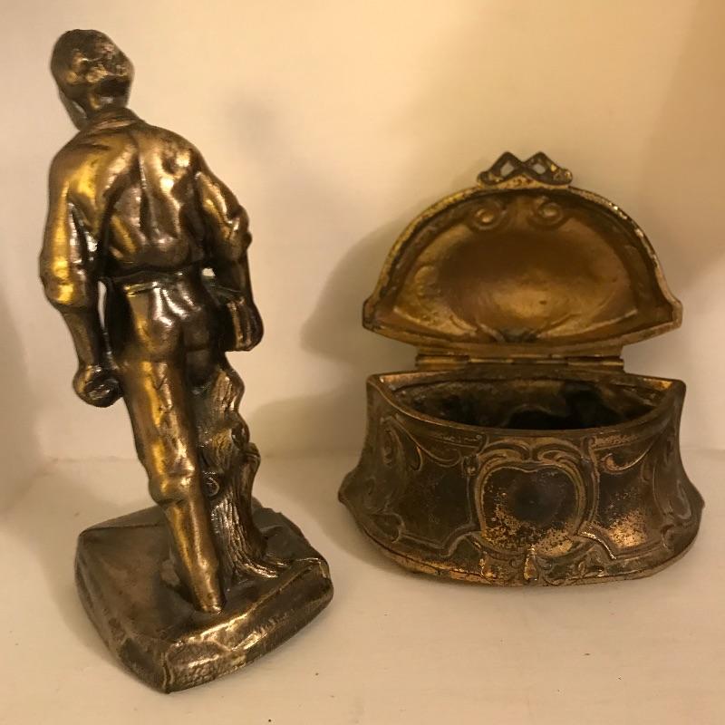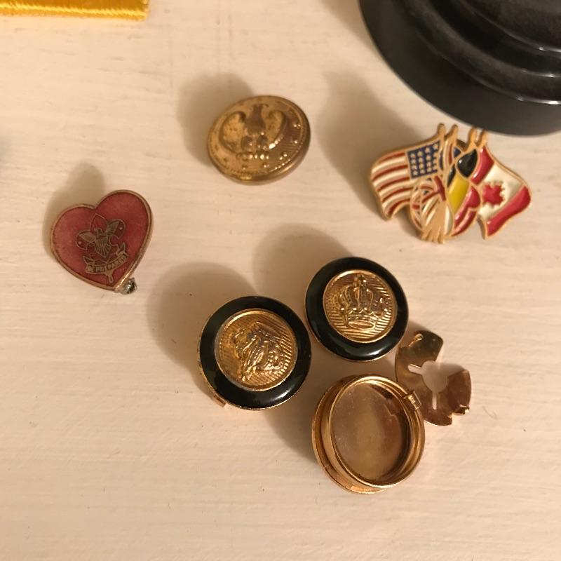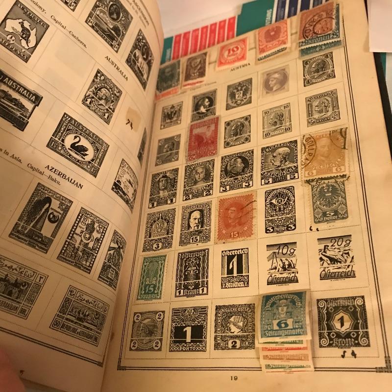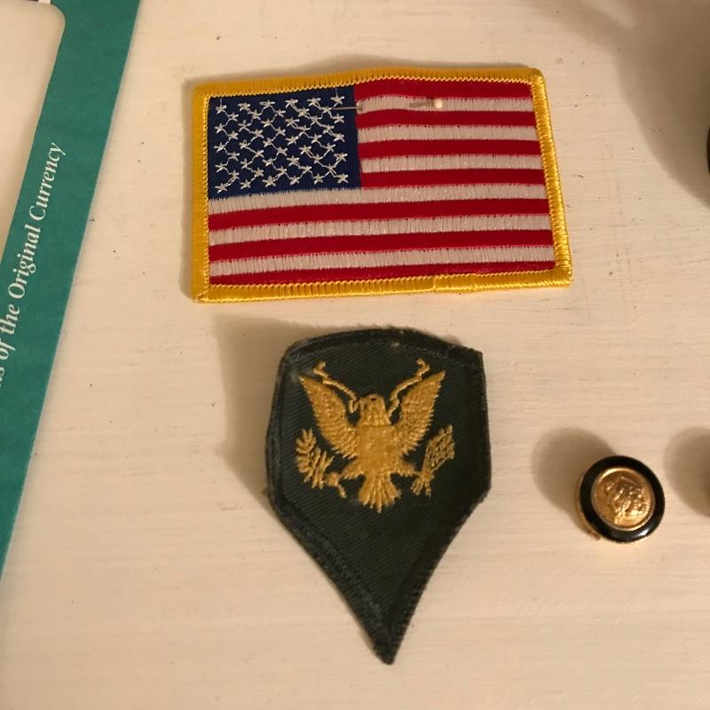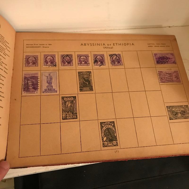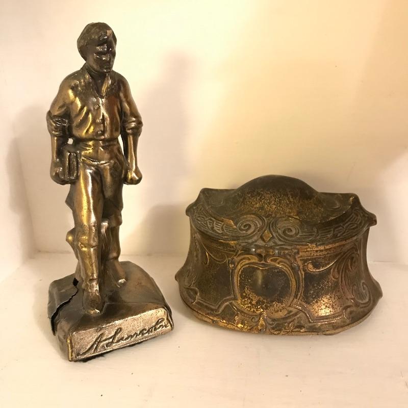 Interesting group of collectible stamp books that have just begun to be filled. Lot also contains pins, button covers, a brass Lincoln statuette! The list doesn’t end there - a vintage desk flag display, replicas of colonial, revolutionary and confederate bank notes(replicas). See photos. Shipping available.