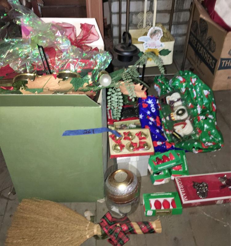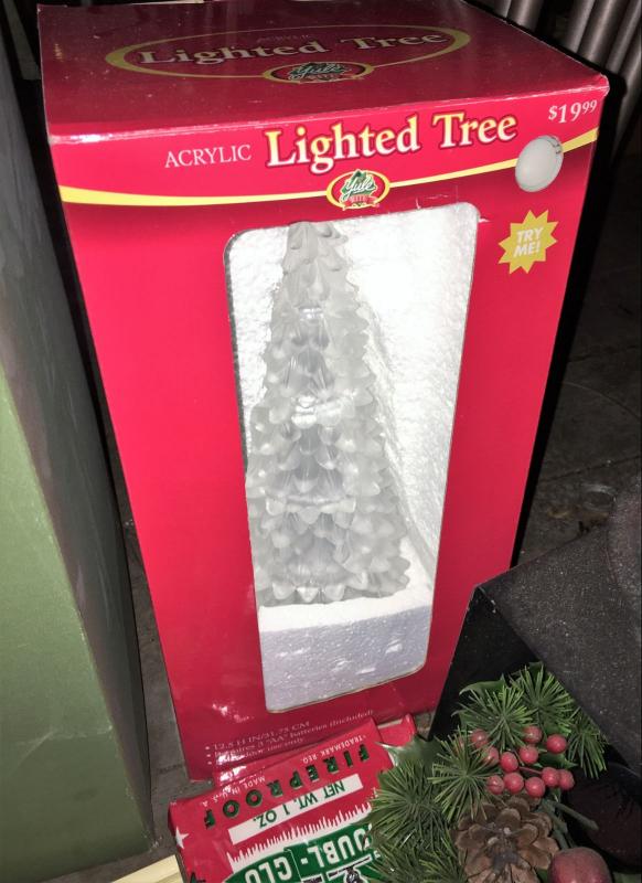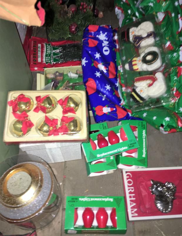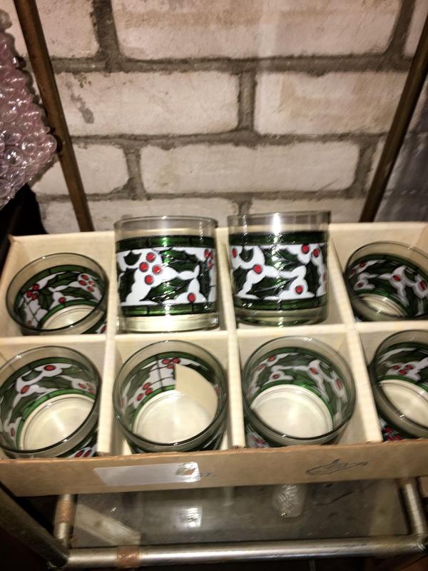 Bells, small lighted tree, set of 8 glasses, gorham cat ornaments & more
