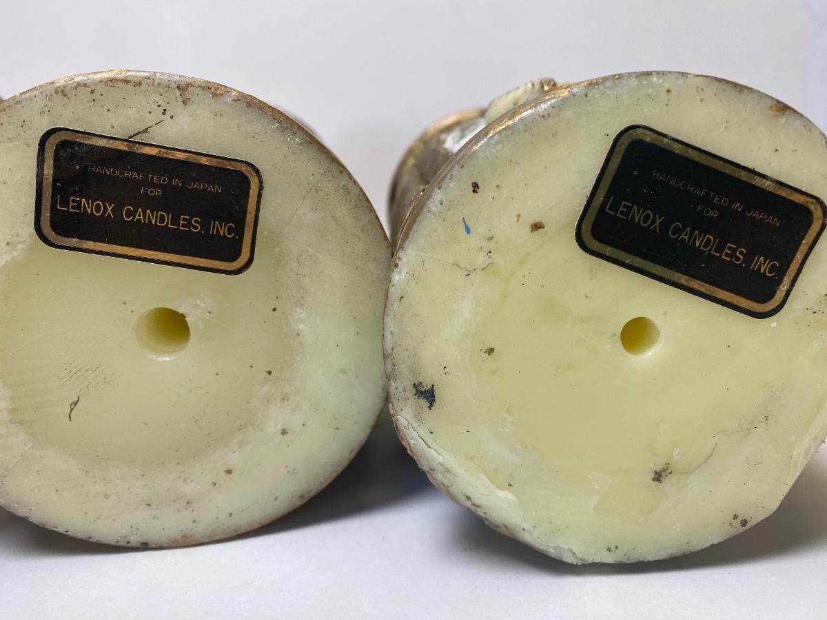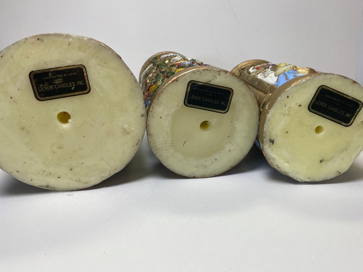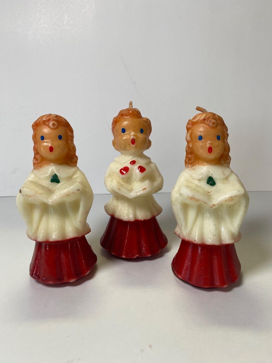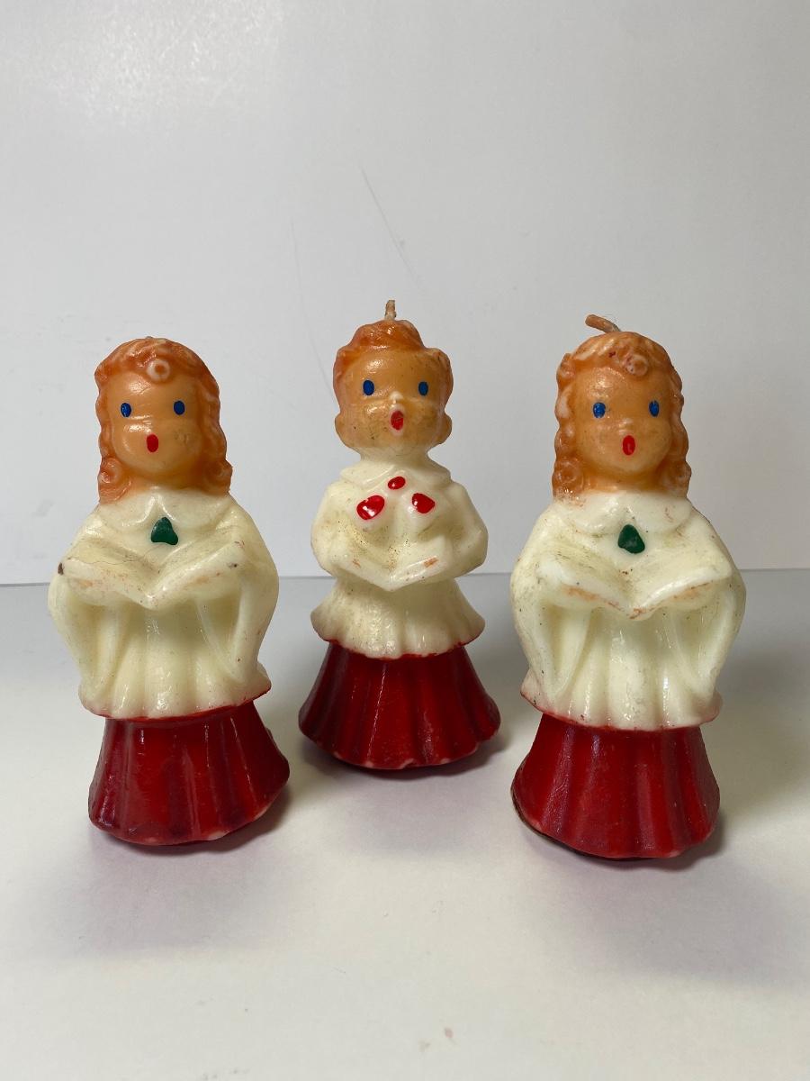 Three Lenox Christmas candles and three singing children Gurly Company Christmas candles.
