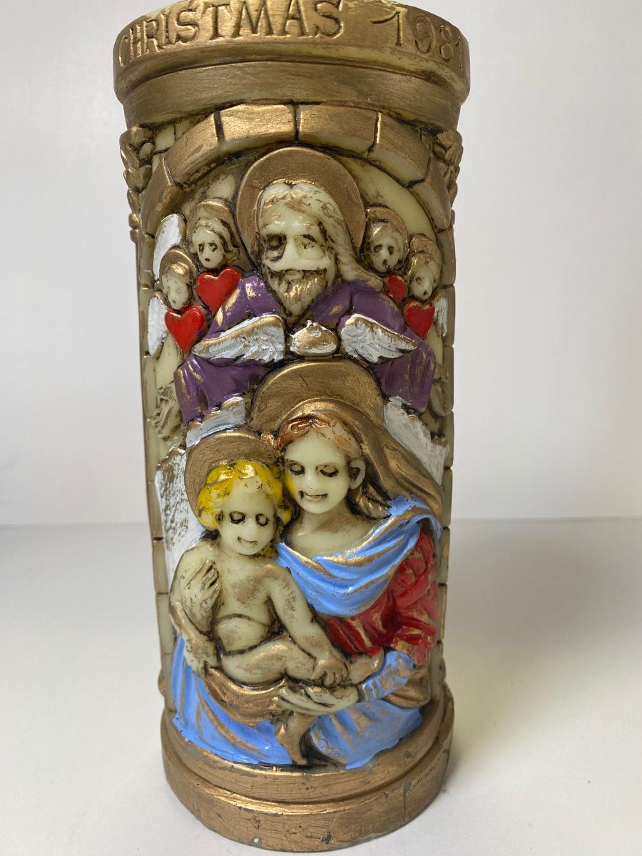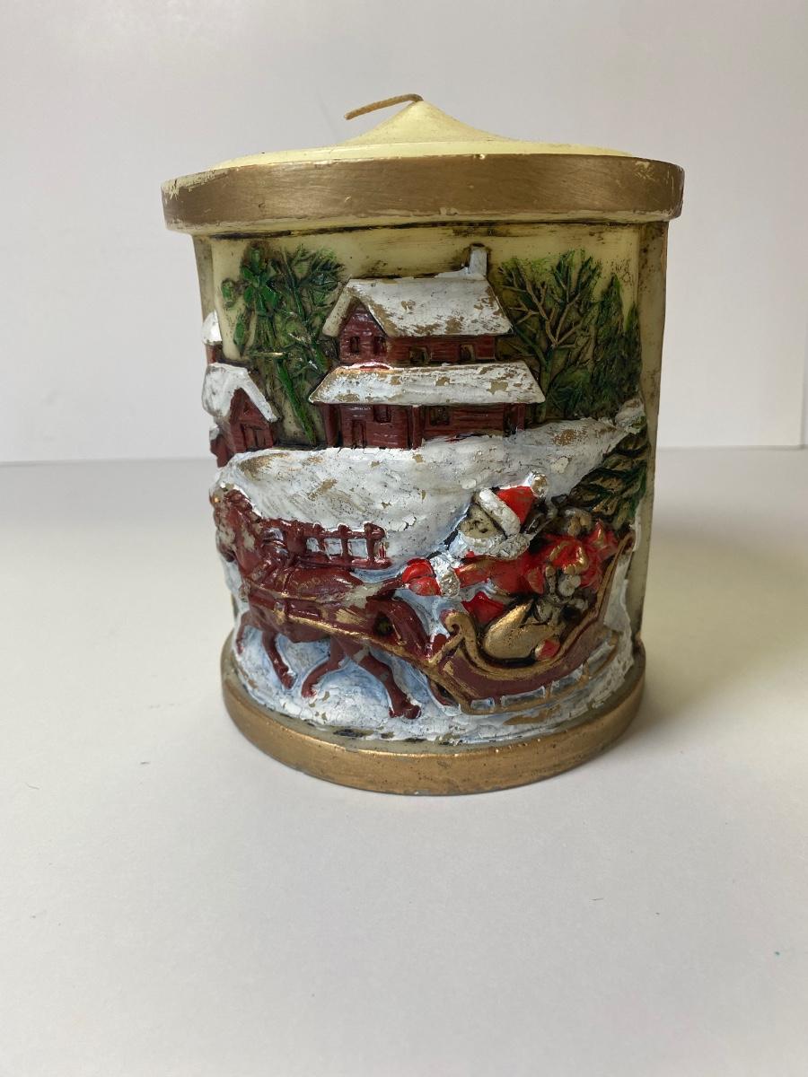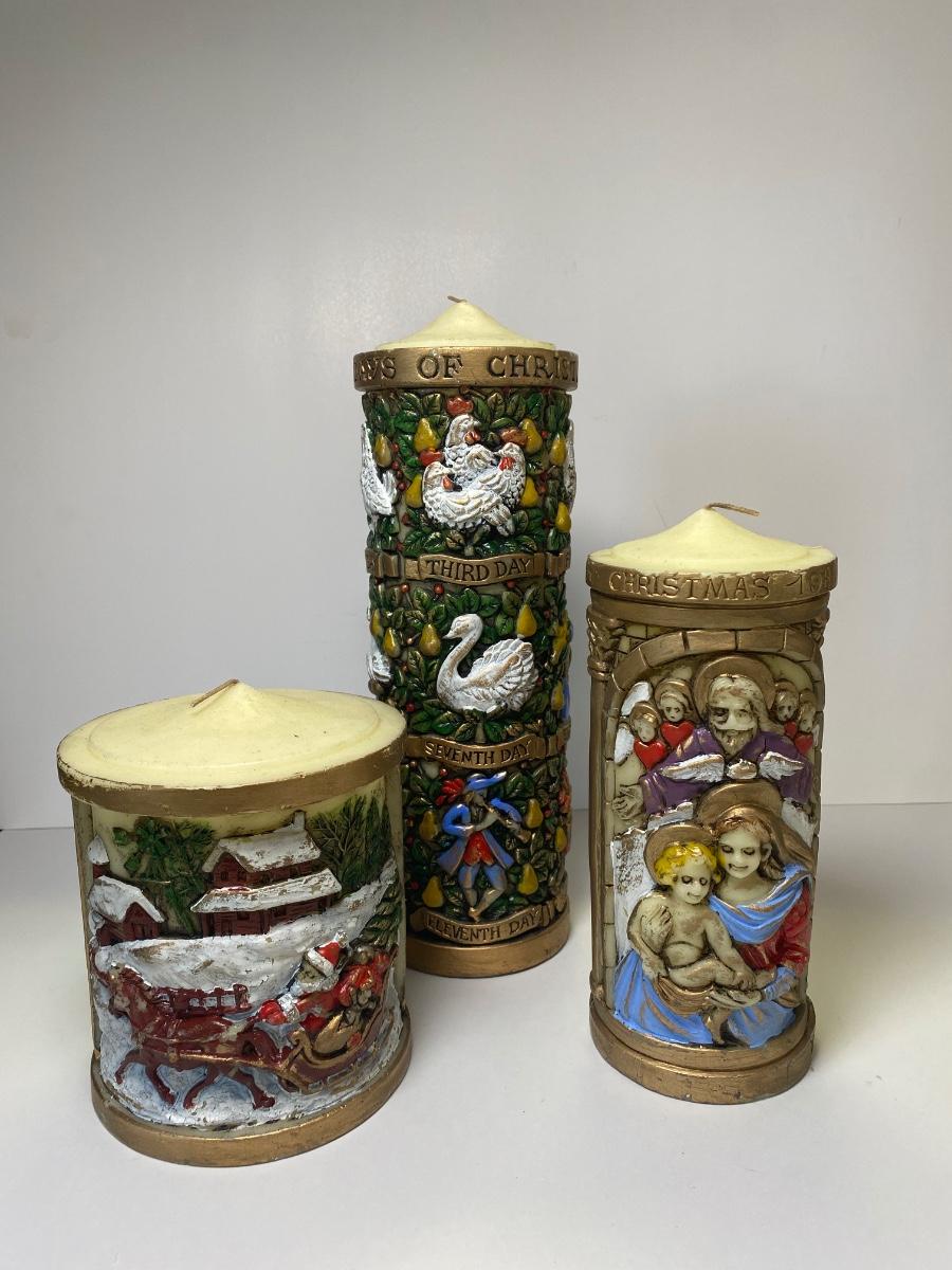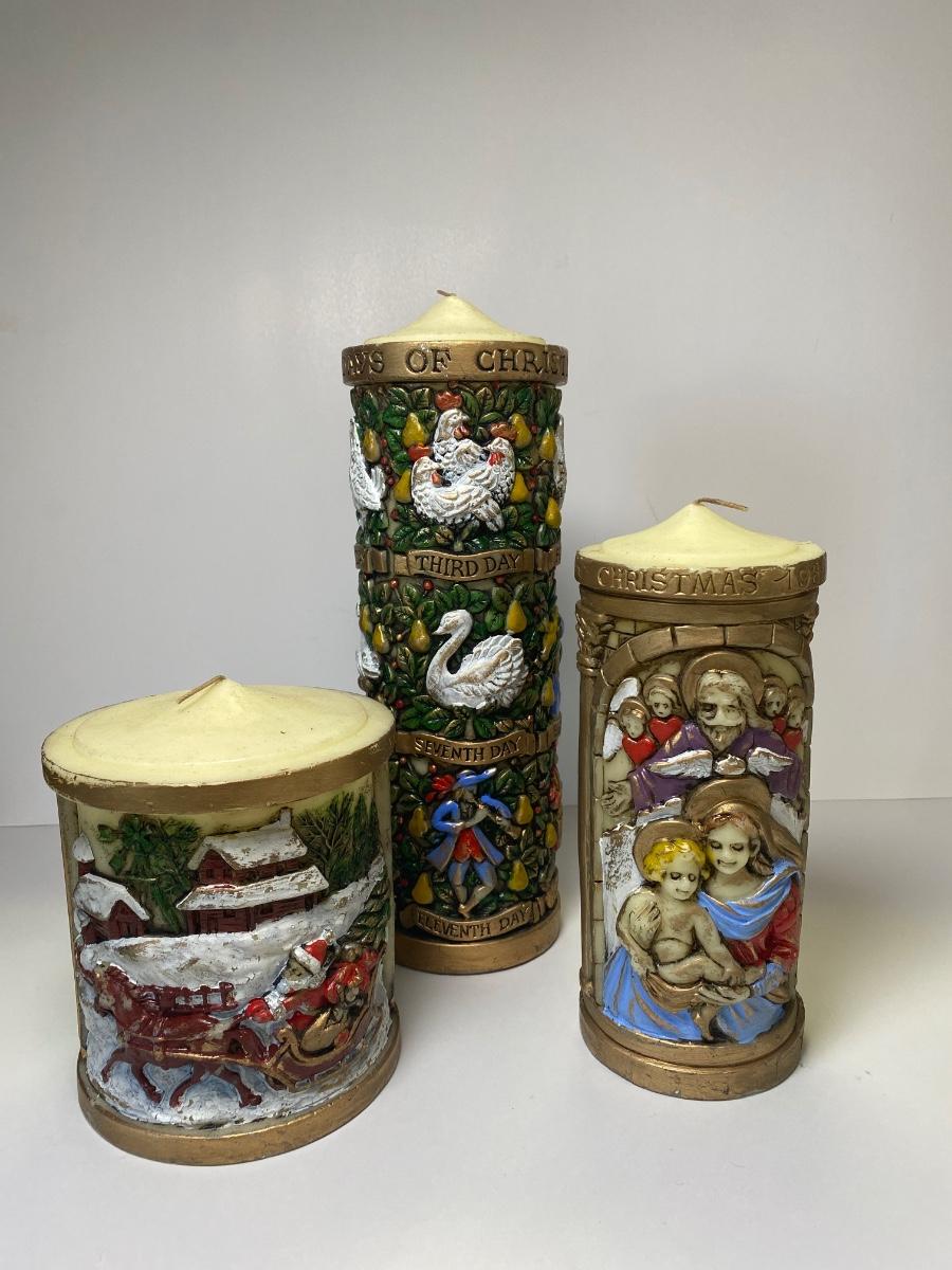 Three Lenox Christmas candles and three singing children Gurly Company Christmas candles.