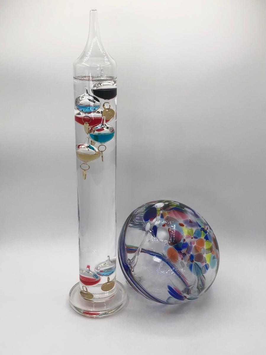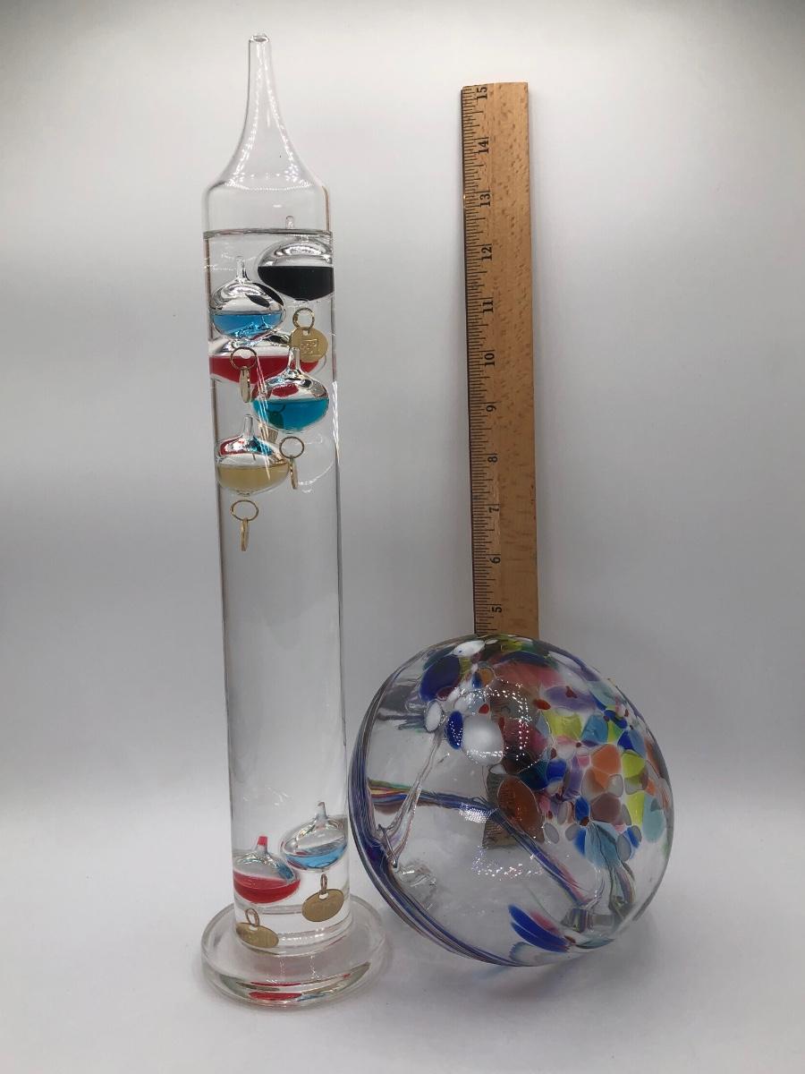 LOT 261F: Gorgeous Colorful Hand Blown Glass Orb (4.5") & Galileo Thermometer (15")