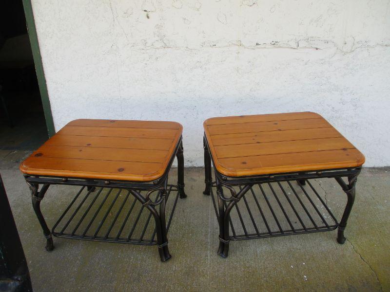 Lot 262 - Wooden End Table - Wrought Iron Legs