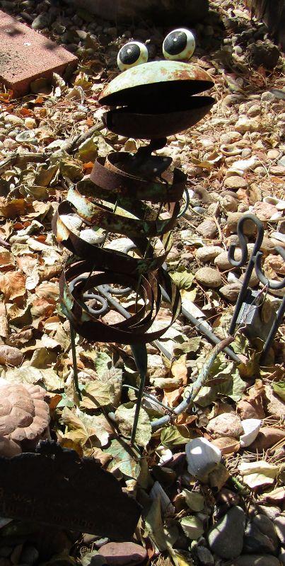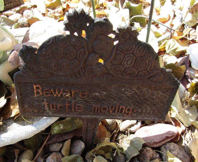 2 IRON TURTLE MOVING SIGNS AND A METAL FROG THAT'S LOST SOME COLOR AND IS RUSTY