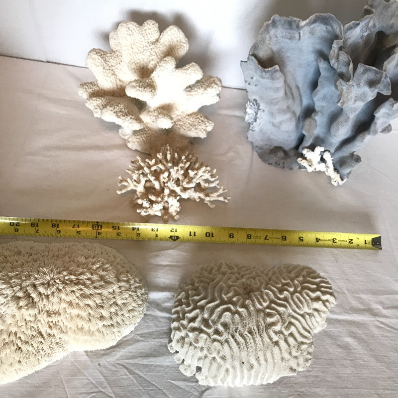 Gorgeous coral in whites and a light blue. Nice large pieces would look beautiful displayed. Great condition. See photos with measuring tape for scale. No shipping