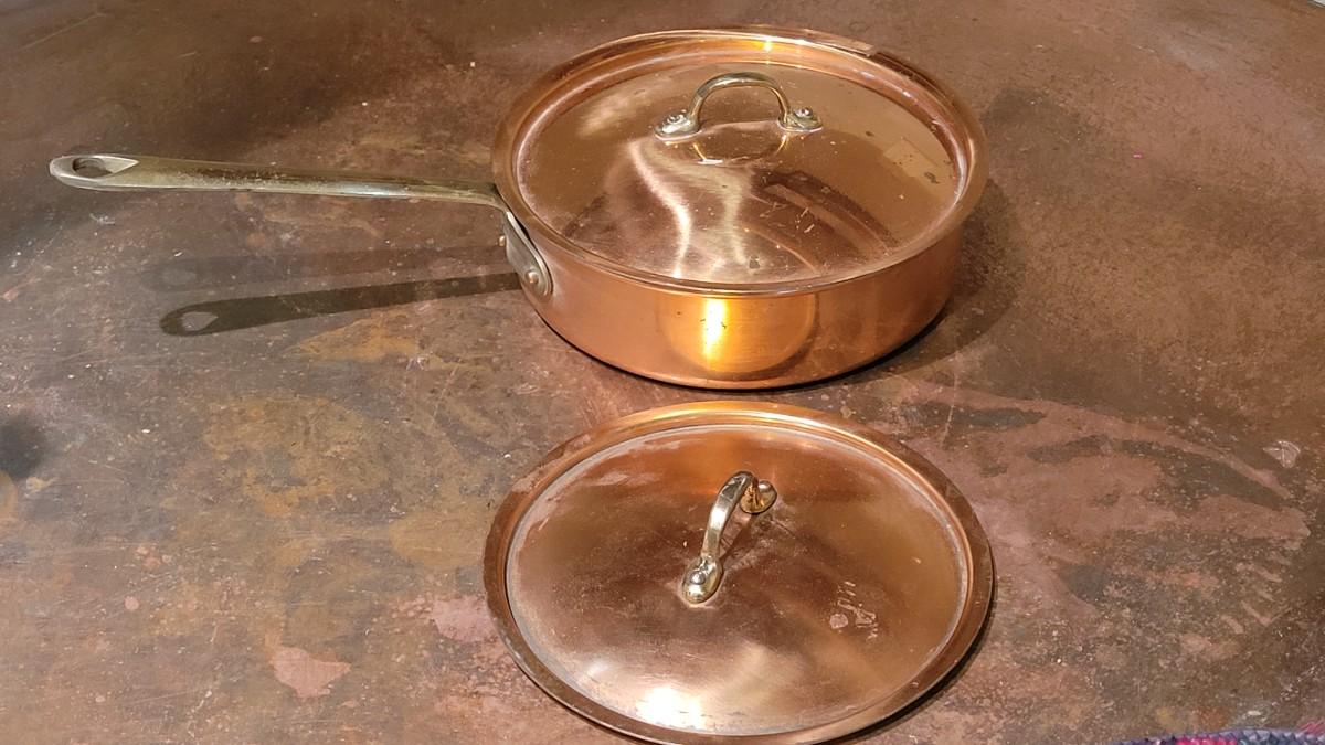 Lot 262: Copral Copper Frying Pan & 2 Lids (one lid fits pan)
