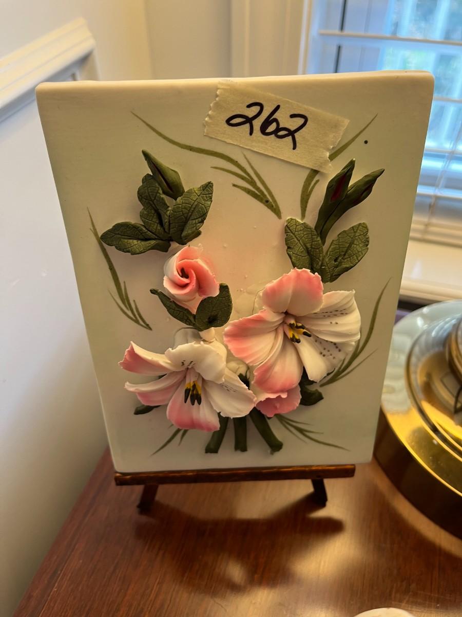 Decorative Plaque with 3D Flowers and Stand - Lot 262