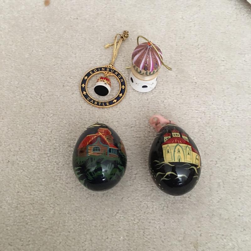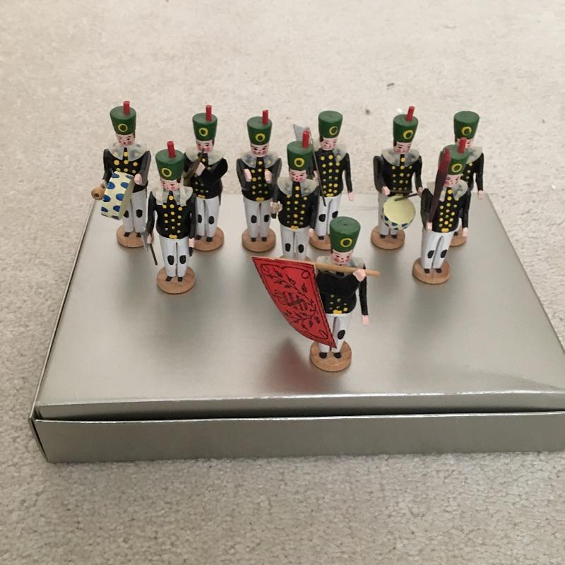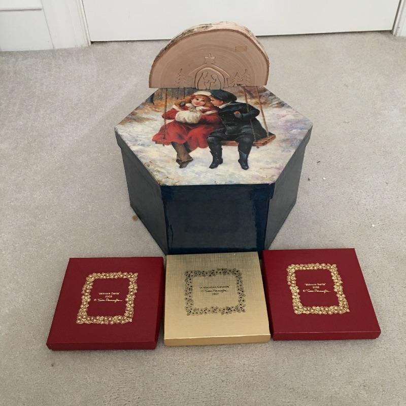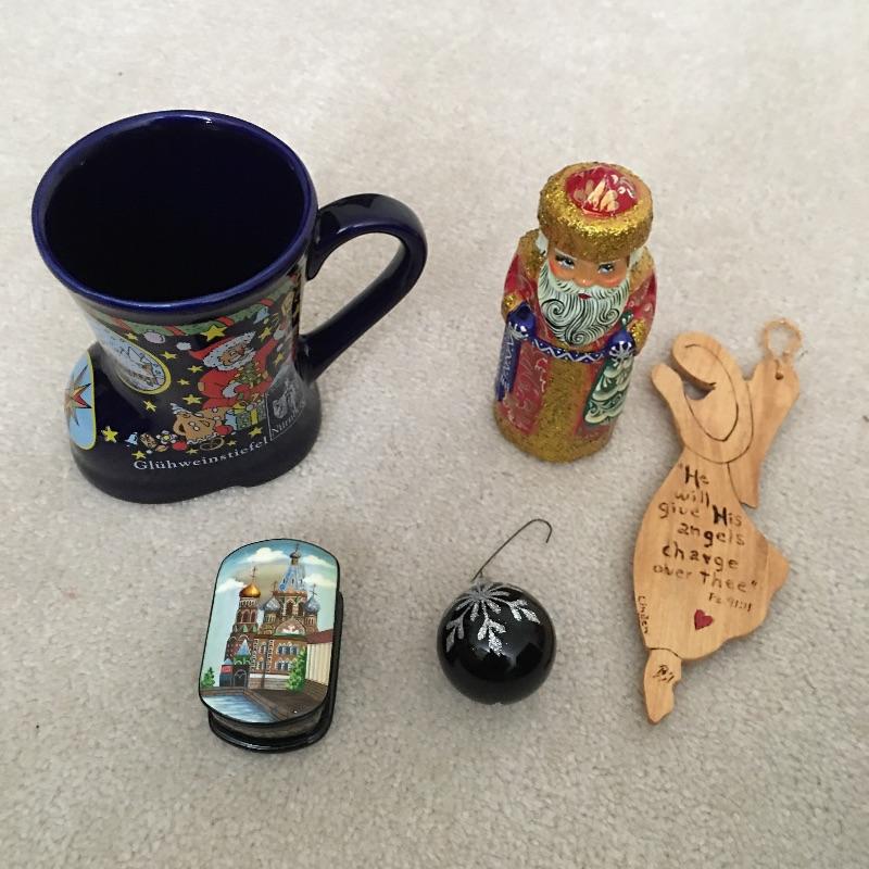 This charming and special array of Christmas decorations includes three signed and numbered Biltmore ornaments by Teresa Pennington, wooden figurine, small wooden band members, unique wooden nativity scene and more. Largest wooden figurine measures 8.5” tall.