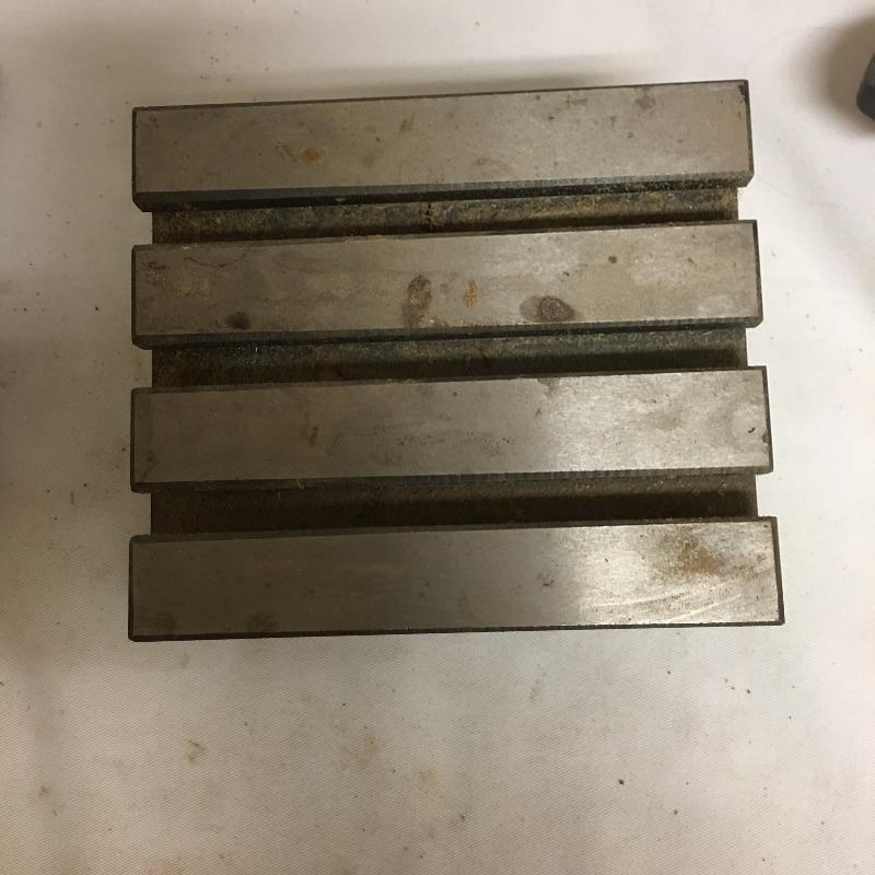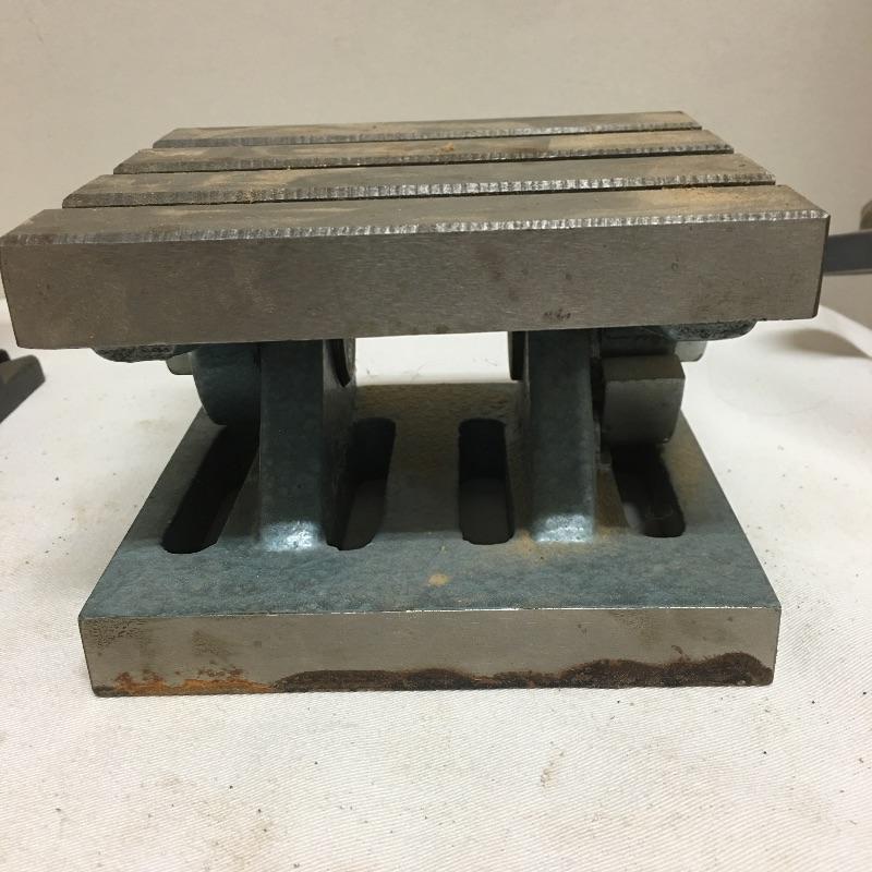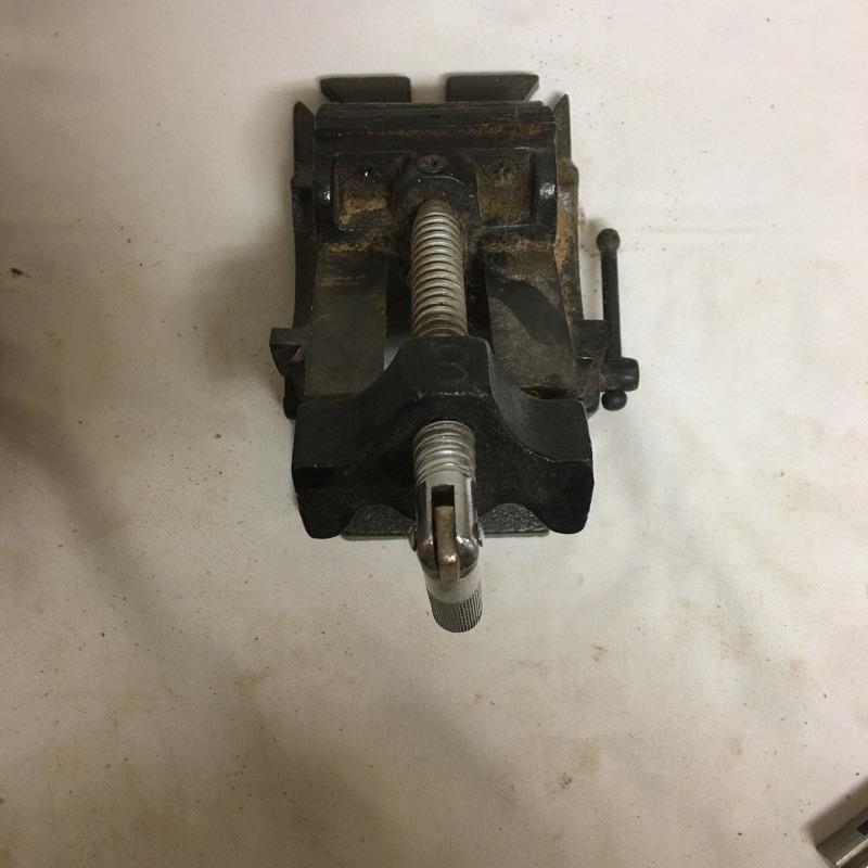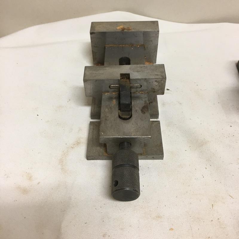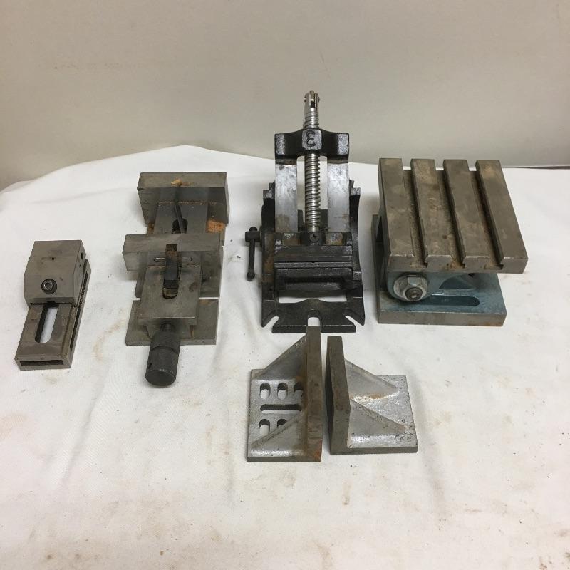 Lot includes three drill press vises with three more pieces. Largest vise measures 4” x 10” x 2.5”. Would go great with lot 260.