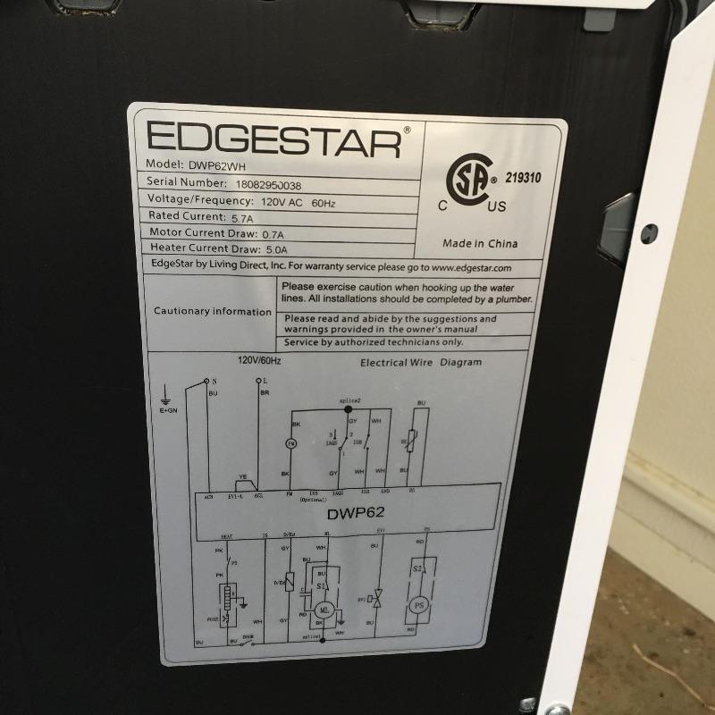 Dishwasher powers on but was not tested. Dishwasher measures 19.5” x 20.5” x 17.5”.
