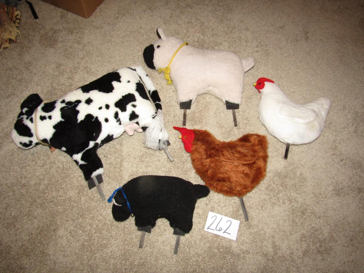 THESE CUTE PLUSH FARM ANIMALS ARE MOUNTED ON IRON RODS TO BE DISPLAYED IN YOUR YARD