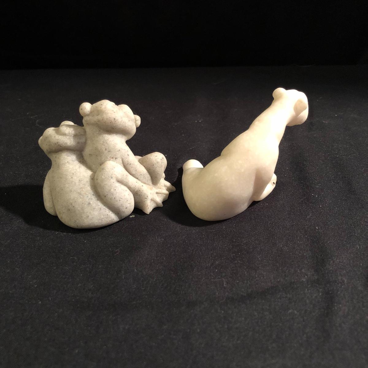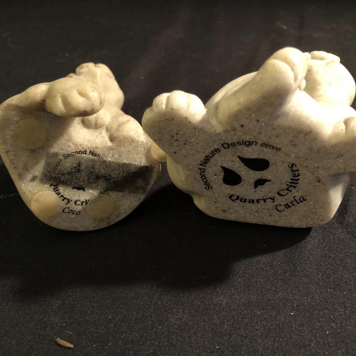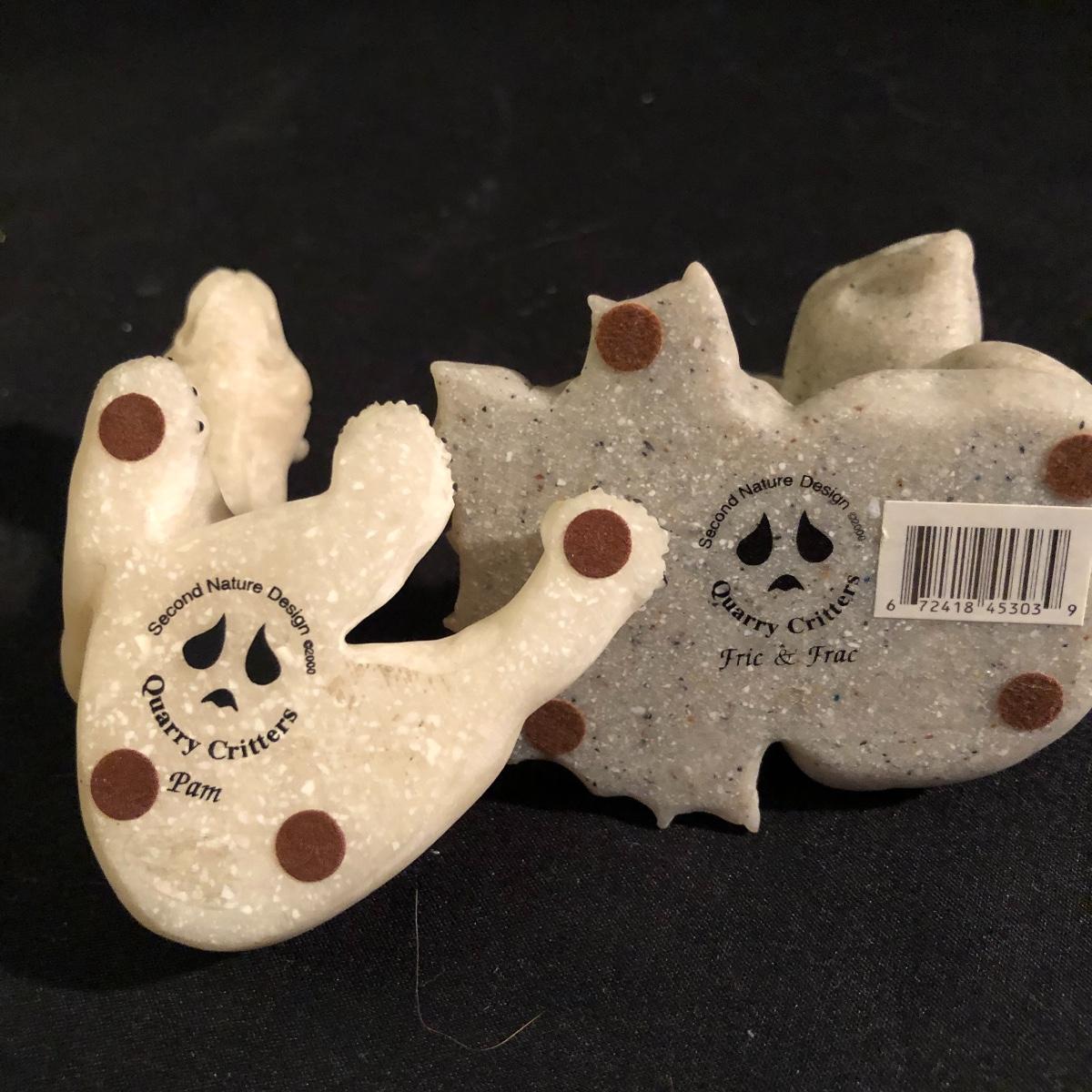 These critters will bring a smile to your face with there whimsical looks. Lot includes Daniel and Dexter Puppy Love, Pam, Fric and Frac, Carla and Coco. Largest piece measures 6” x 7” x 9”. Critters are made of a faux granite.
