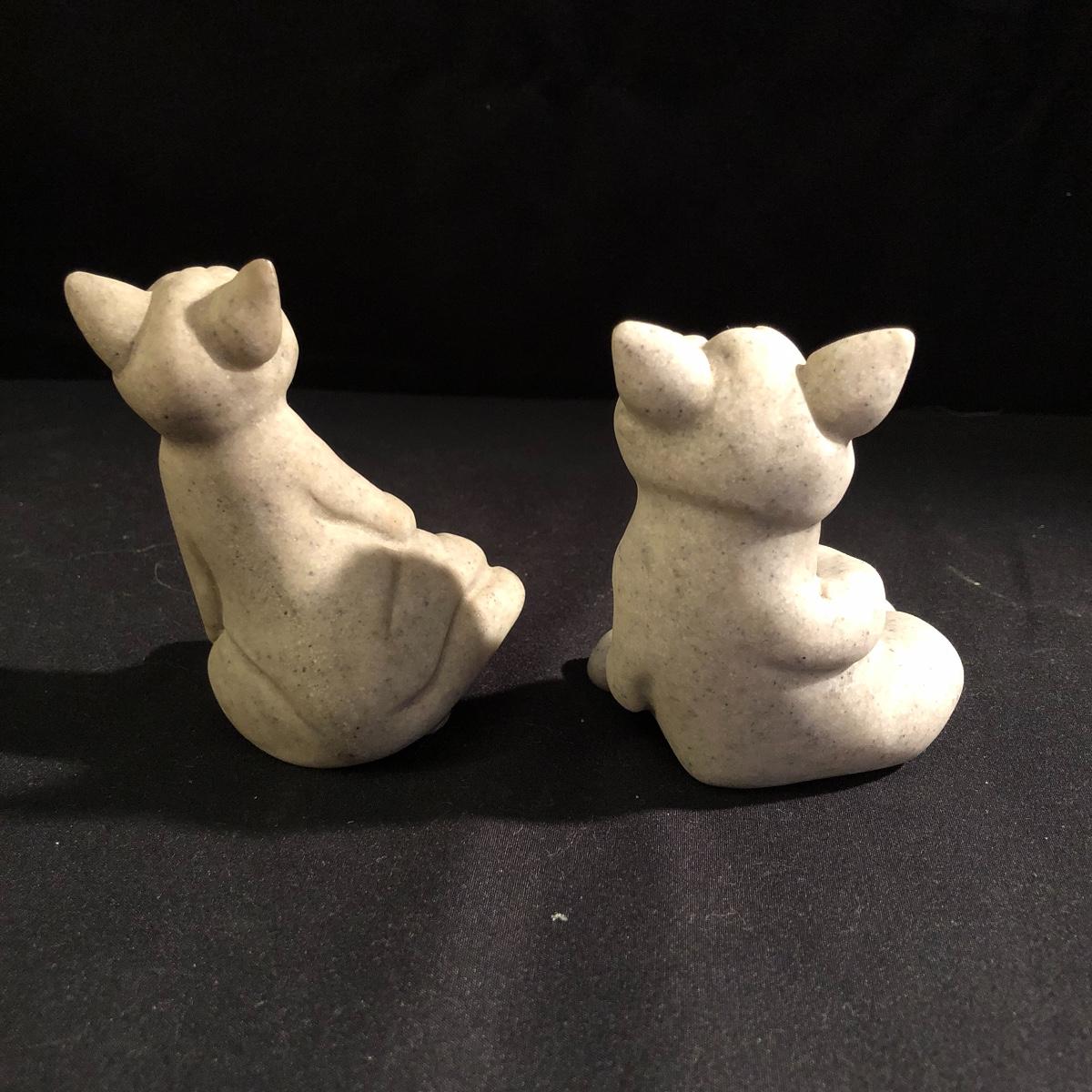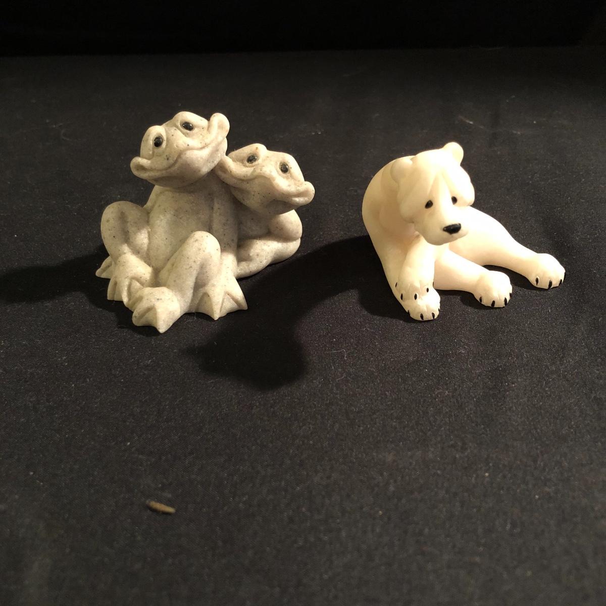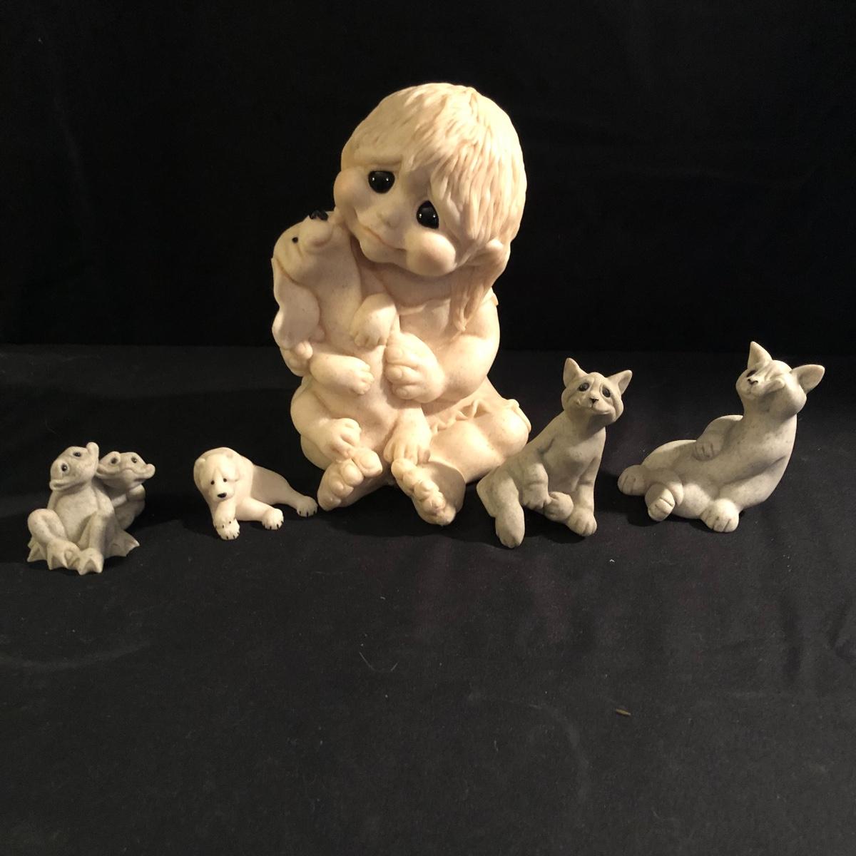 These critters will bring a smile to your face with there whimsical looks. Lot includes Daniel and Dexter Puppy Love, Pam, Fric and Frac, Carla and Coco. Largest piece measures 6” x 7” x 9”. Critters are made of a faux granite.