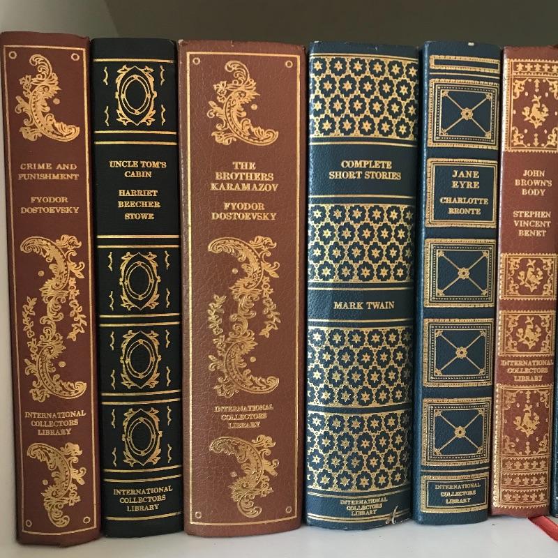 A wonderful collection of vintage and antique books by famed authors. Feast your eyes on Rubaiyat of Omar Khayyam, Mark Twain, Harriet Beecher Stowe and more. Other familiar titles include Uncle Tom’s Cabin, Crime and Punishment and more! Some of the books in this lot are fragile, just further testament to their age and collectibility. But many of them are in great condition. See photos. Also includes brass book holder. Shipping available. Please call UPS store at 828-252-6930 for quote.