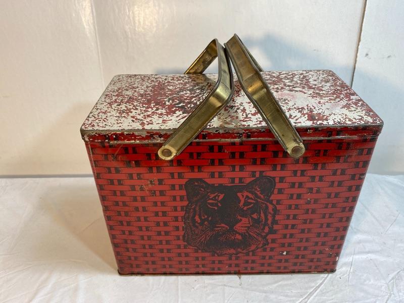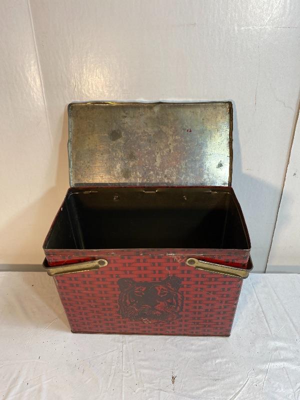 Lot 262 s Hinged Lid Tobacco Box Picnic Basket Weave Tiger