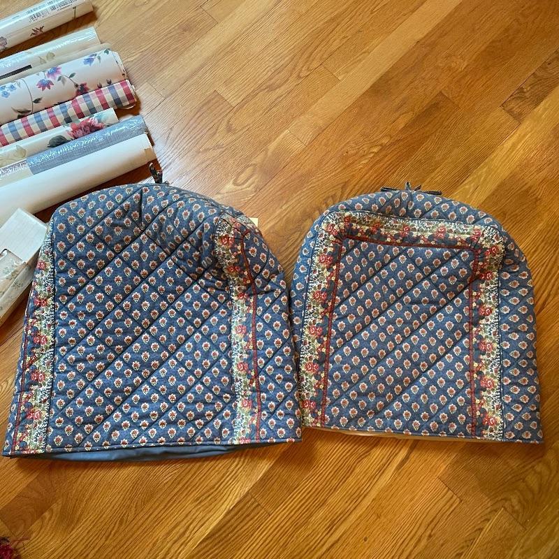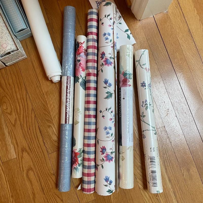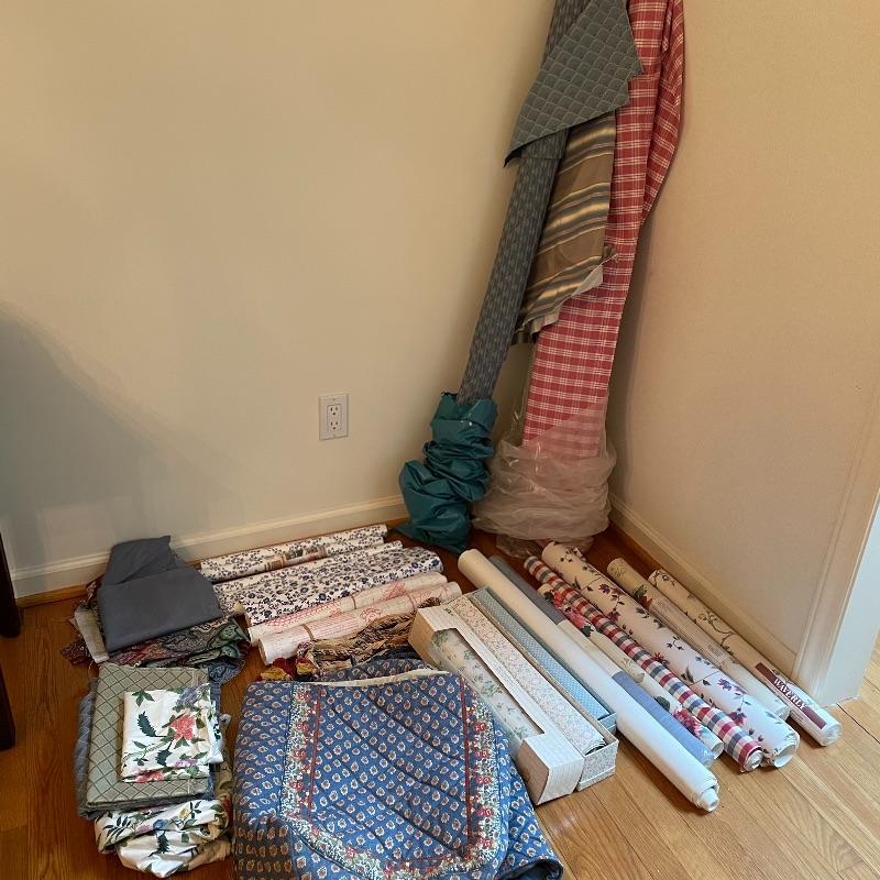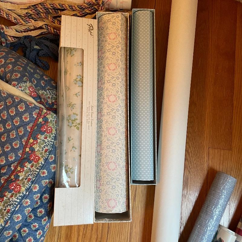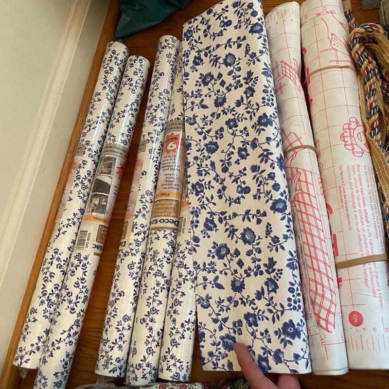 To any DIY-er out there, here’s some things that you might need! Lot has three tall tubes of upholstery, a variety of wall paper and a bunch of contact paper. The two rolls of contact paper with the outside face-up are the same as the larger blue flower design. Lot has some extra smaller fabric and what appears to be two handmade small appliance or sewing machine covers. See images. Local pick up only.