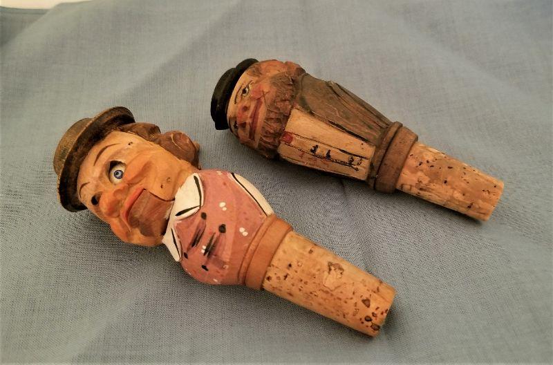 Lot #262 Vintage Black Forest Carved Wine bottle stoppers - mechanical